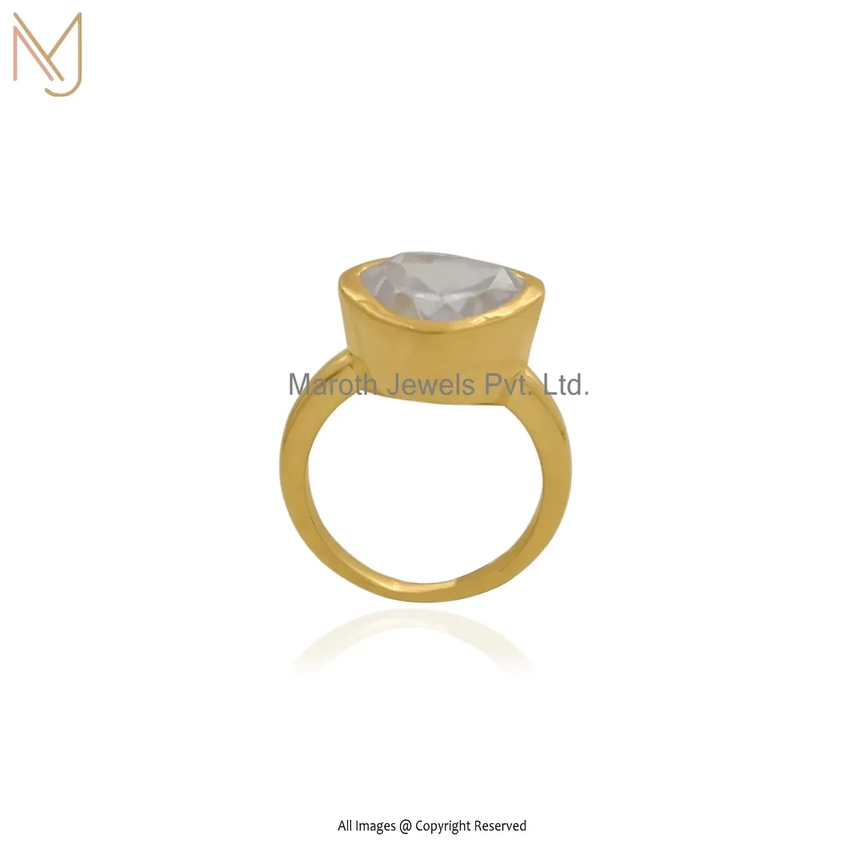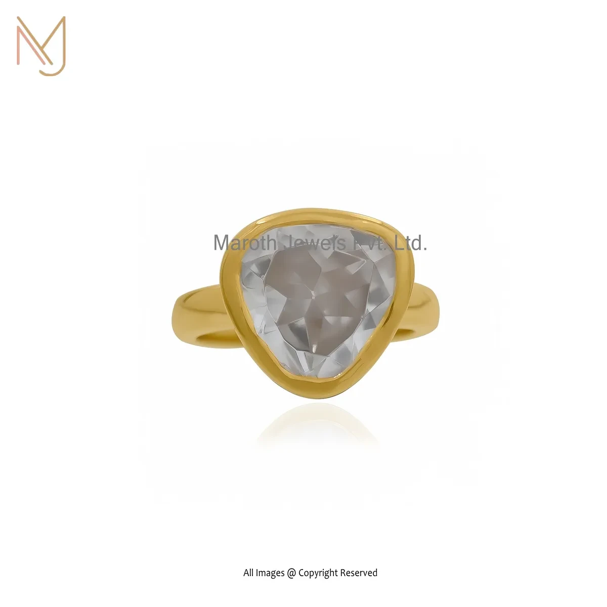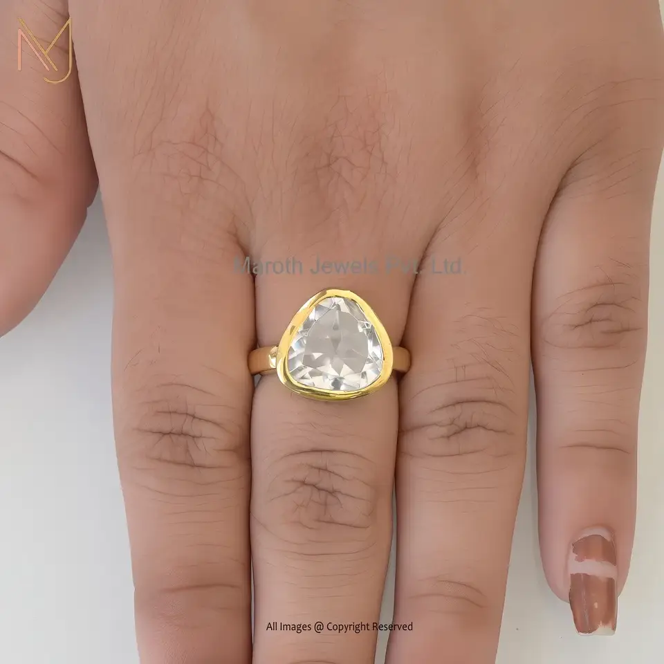 14K Yellow Gold Cubic Zircon Triangle Shape Statement Diamond Ring USA
