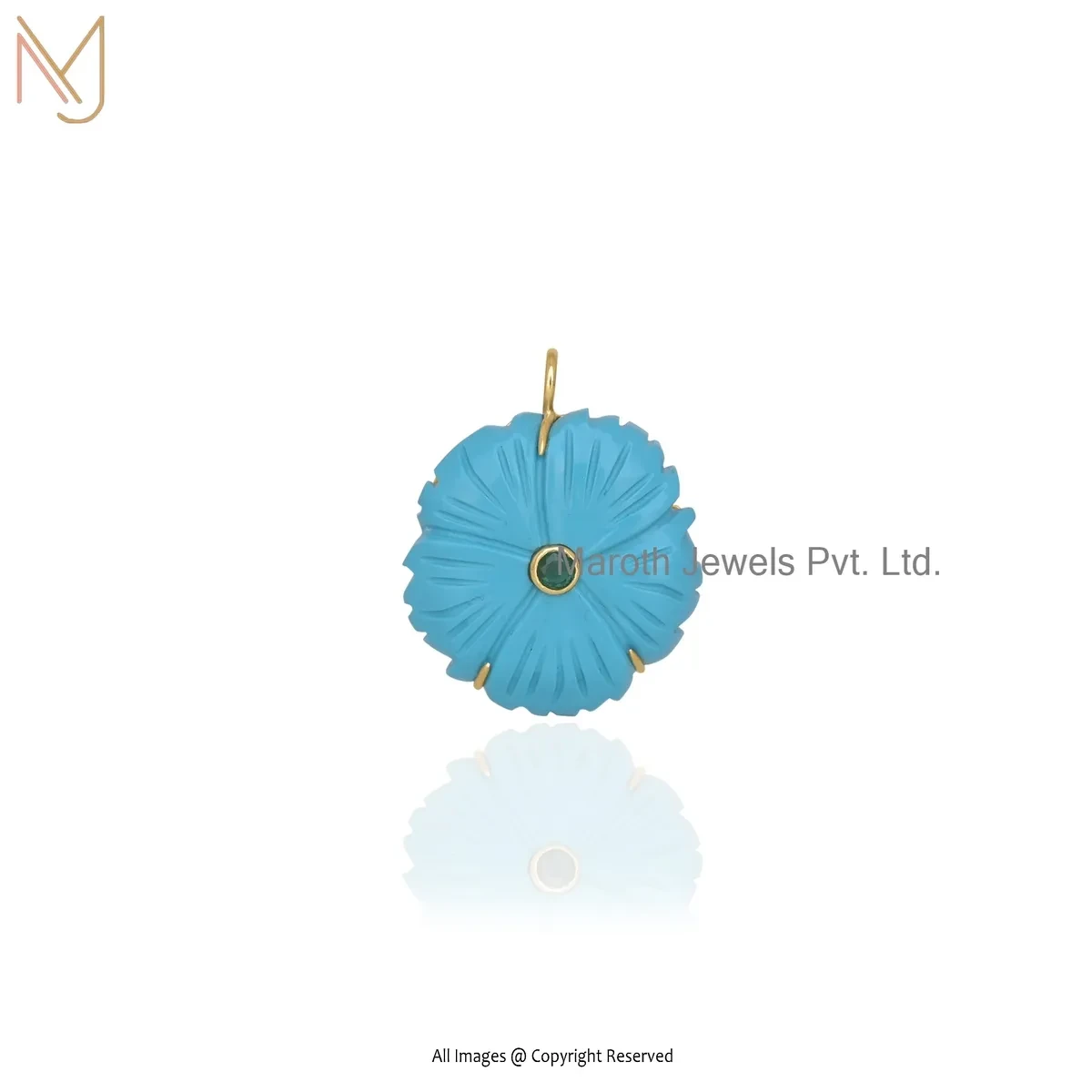 14K Yellow Gold Cubic Zircon & Turquoise Gemstone Flower Pendant Manufacturer