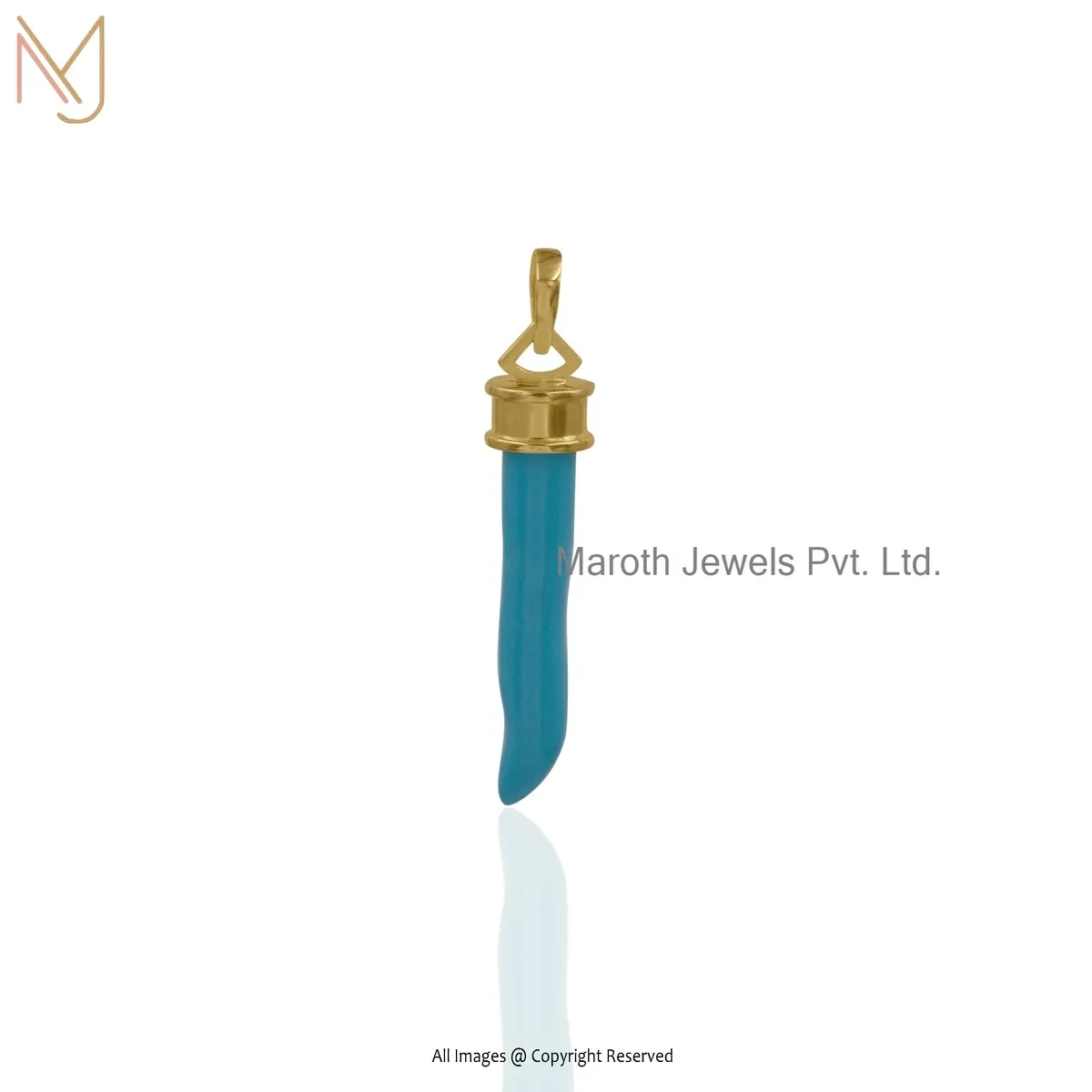 14K Yellow Gold Cubic Zircon & Turquoise Horn Pendant Manufacturer