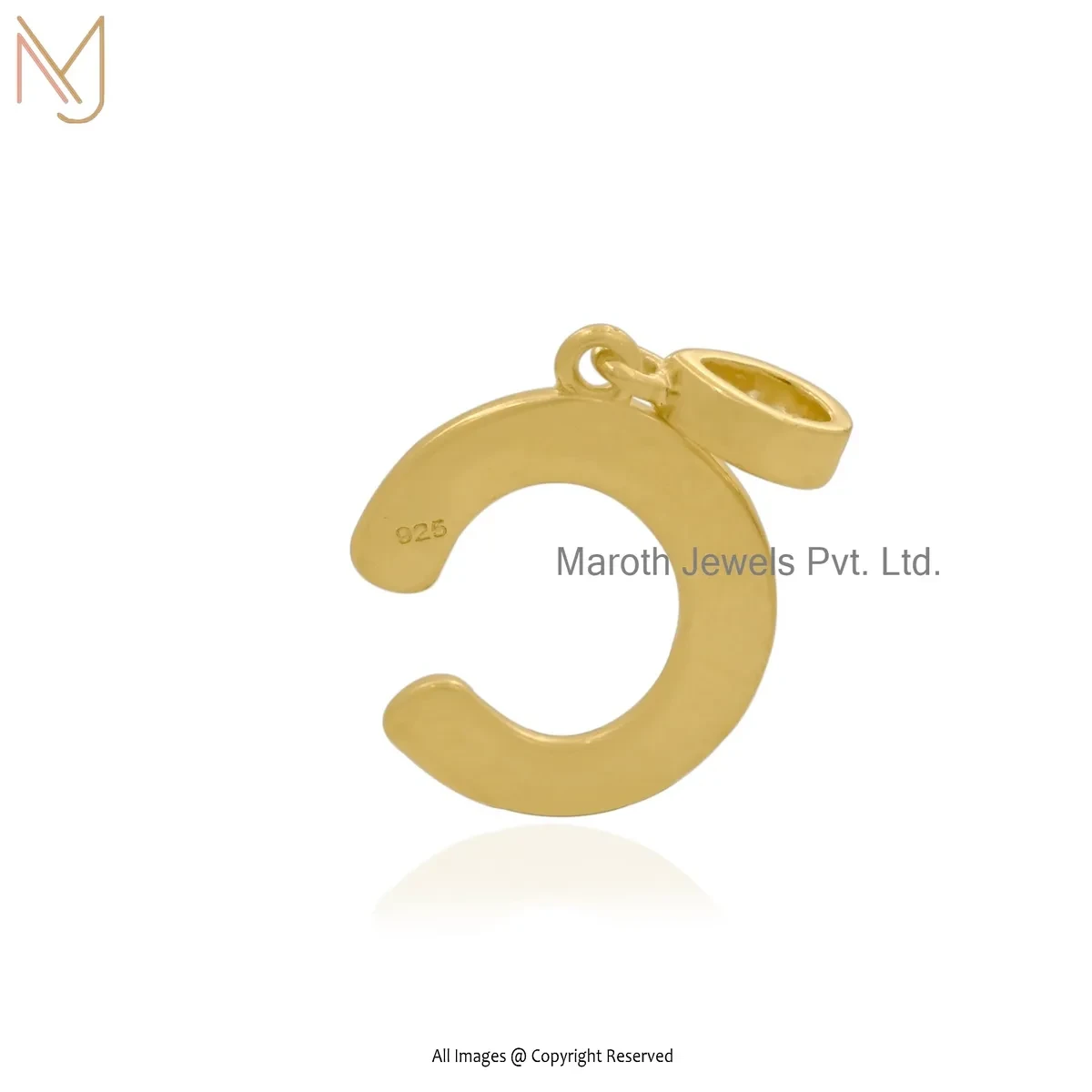 14K Yellow Gold Cubic Zircon & White Enamel Initial Letter Pendant Manufacturer