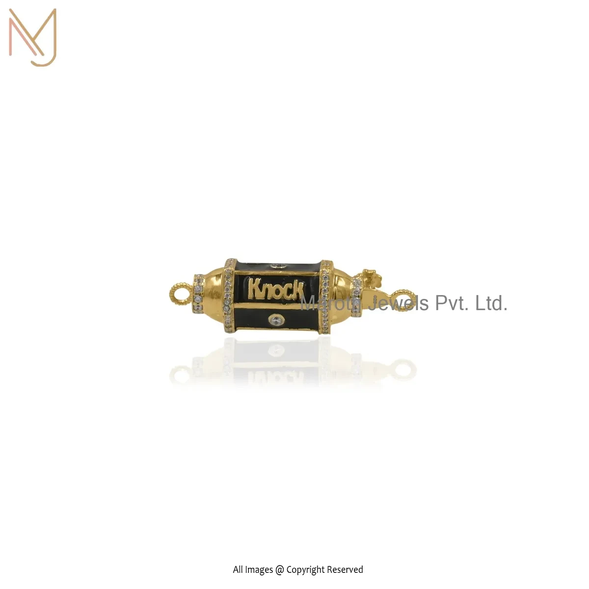 14K Yellow Gold Cubic Zircon & Wood Amulet Charm Pendant Custom Jewelry