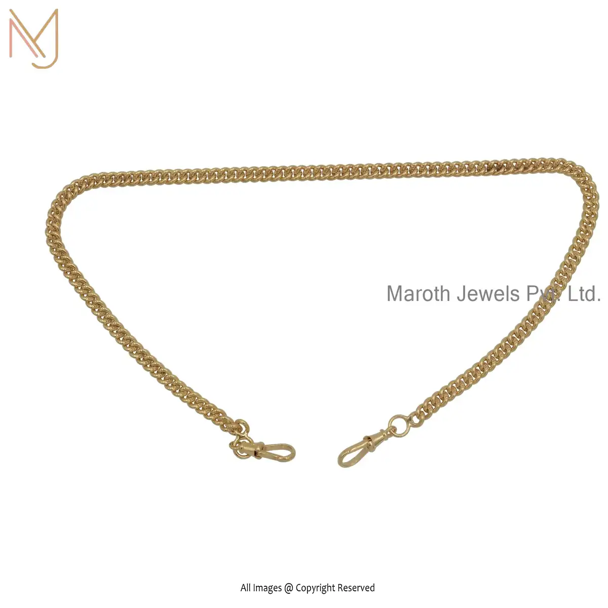 14K Yellow Gold Width Curb Chain With Attached Two Swivel Lock And Additional Chain With A Spring Ring And Bar Chain Jewelry USA