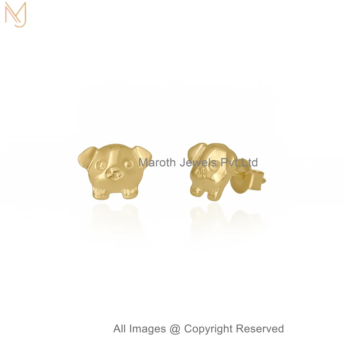 14K Yellow Gold Cute Puppy Face Gold Stud Earrings Jewelry Supplier
