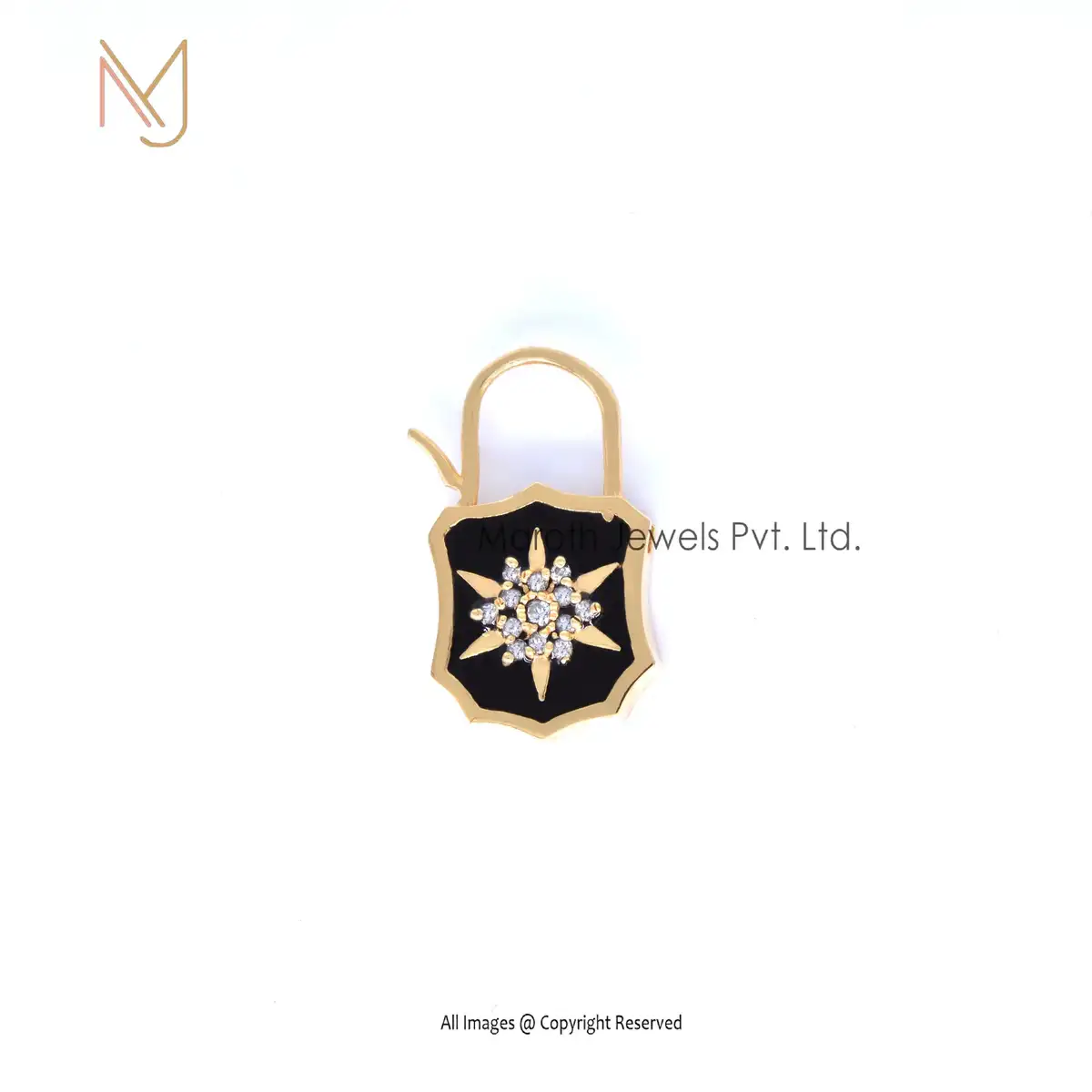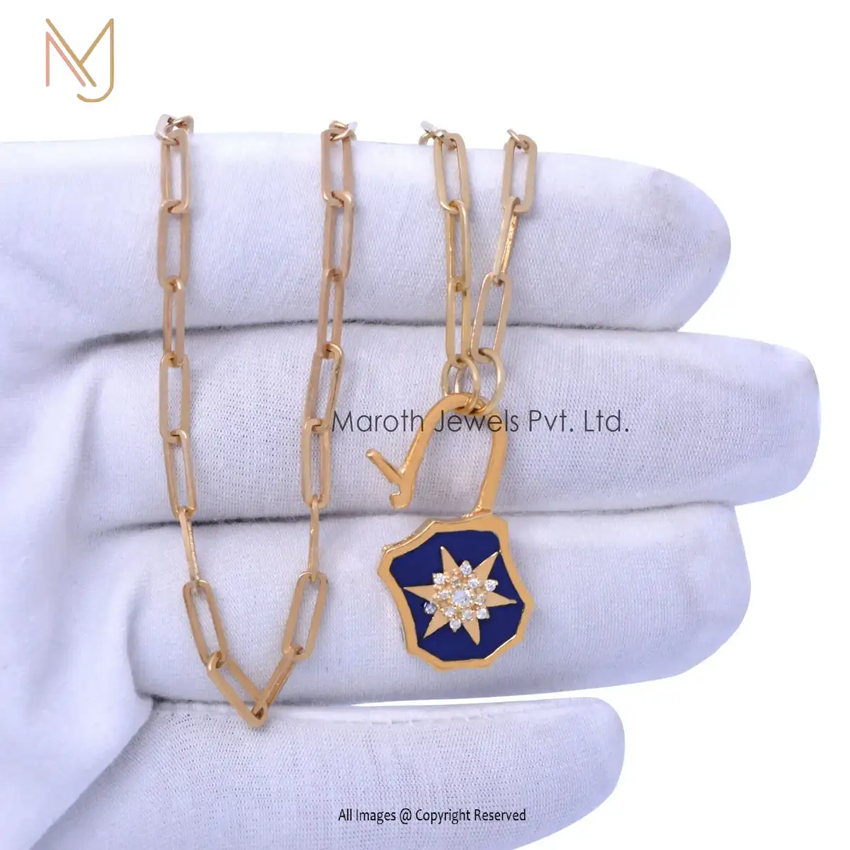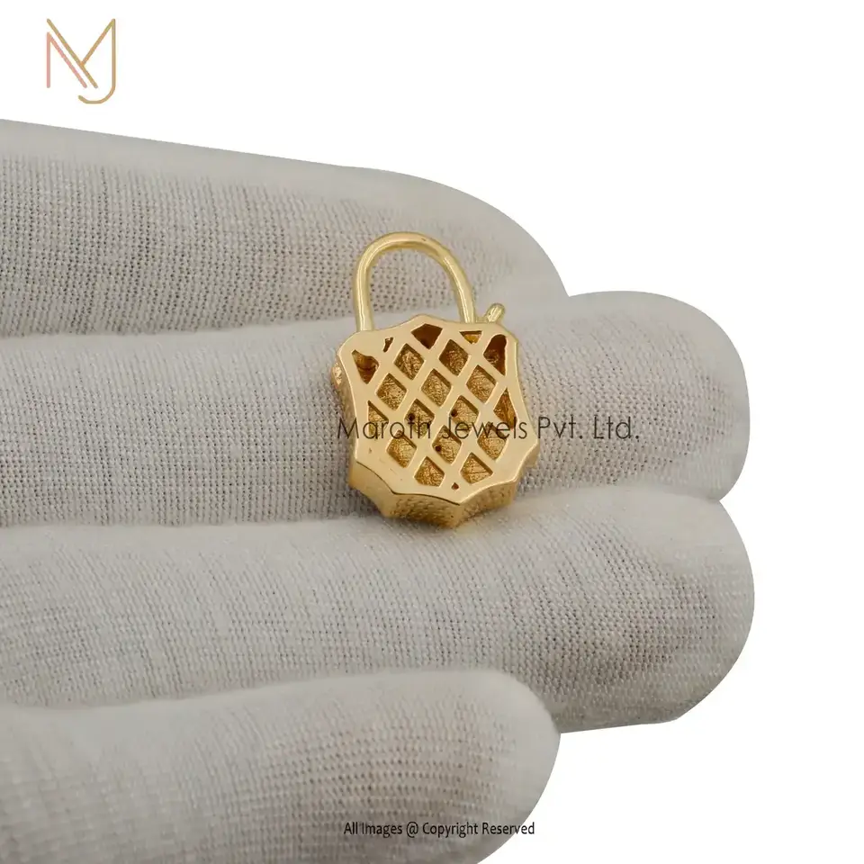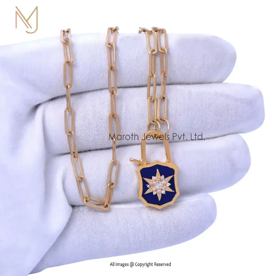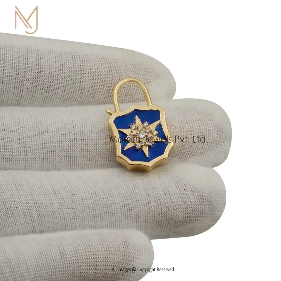 14K Yellow Gold CZ & Blue Enamel White Diamond Padlock Manufacturer
