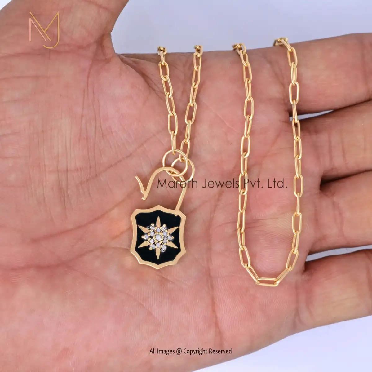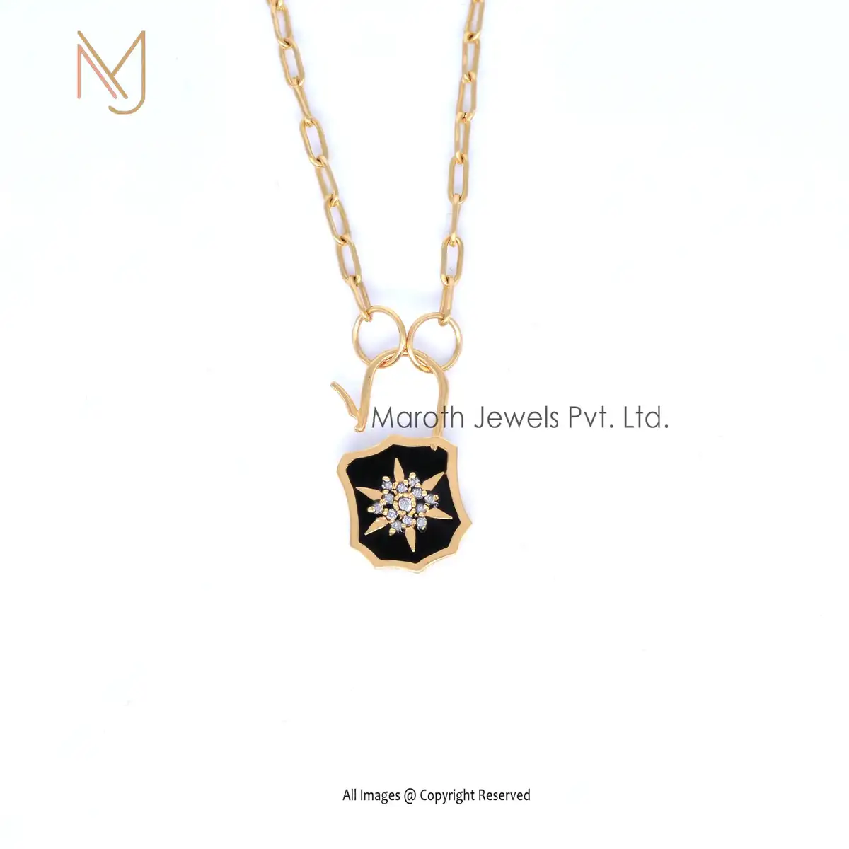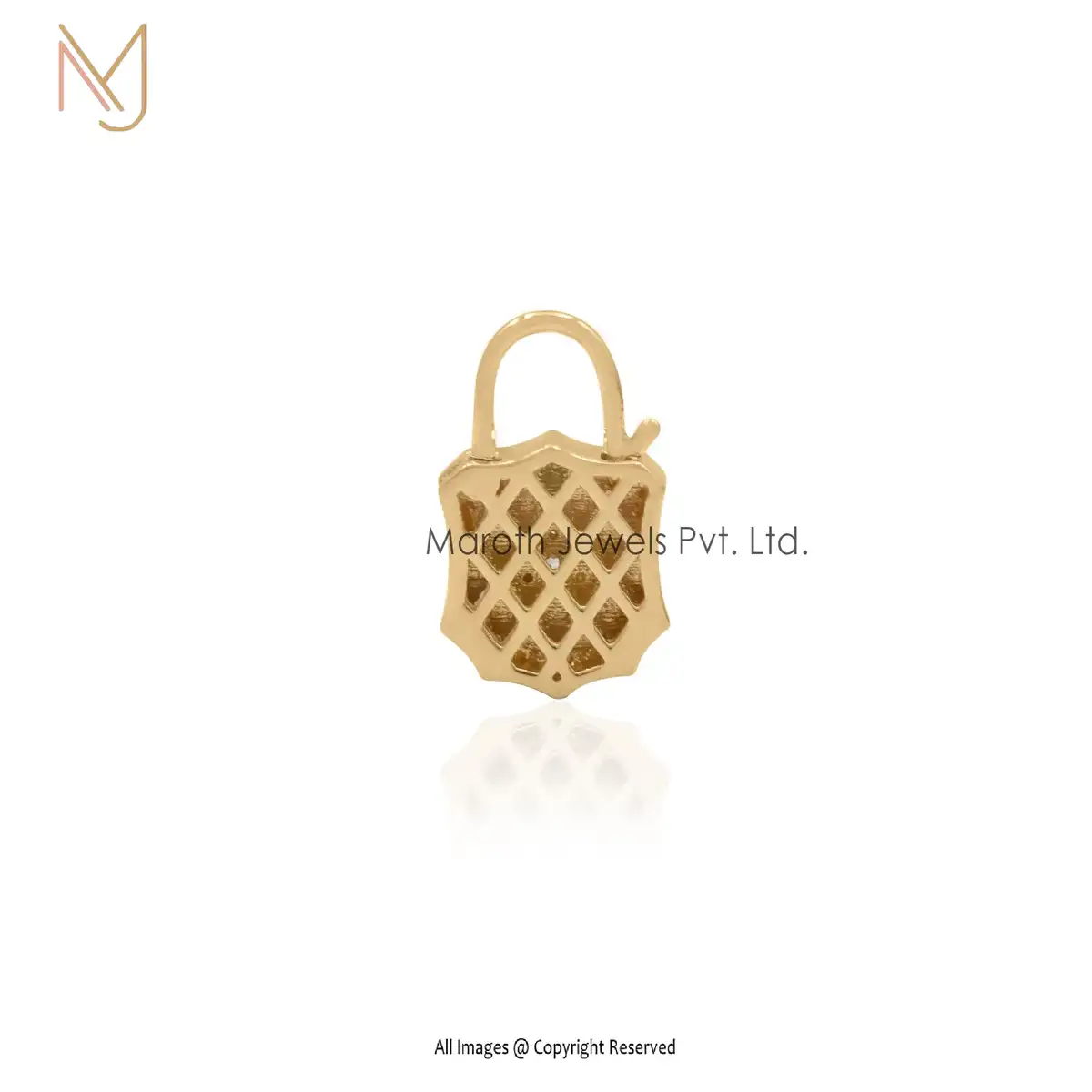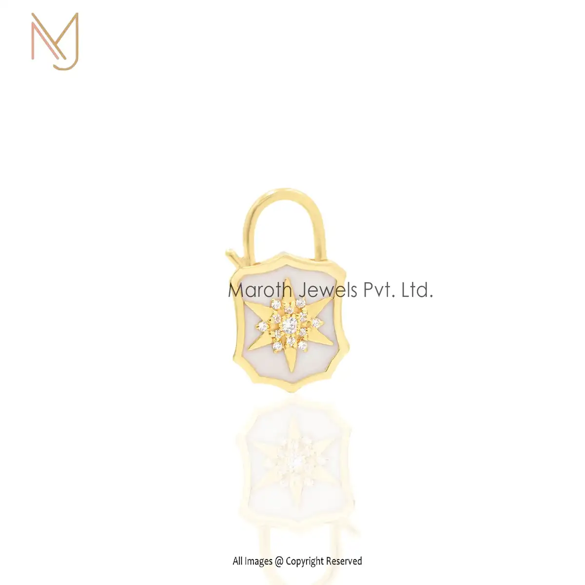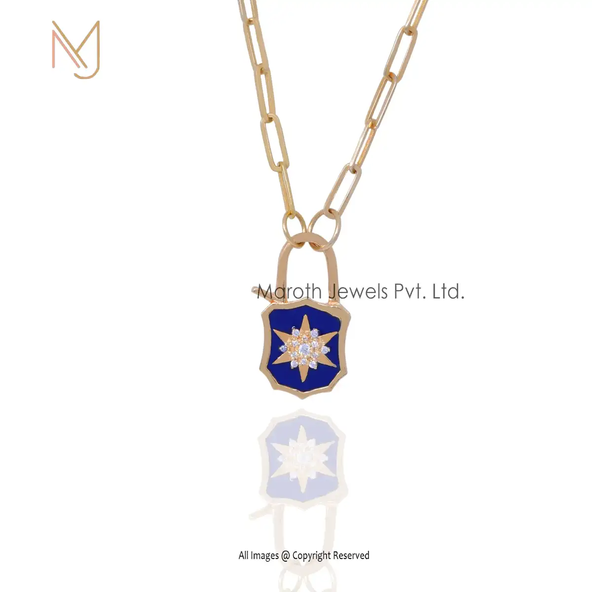 14K Yellow Gold CZ & Blue Enamel White Diamond Padlock Manufacturer