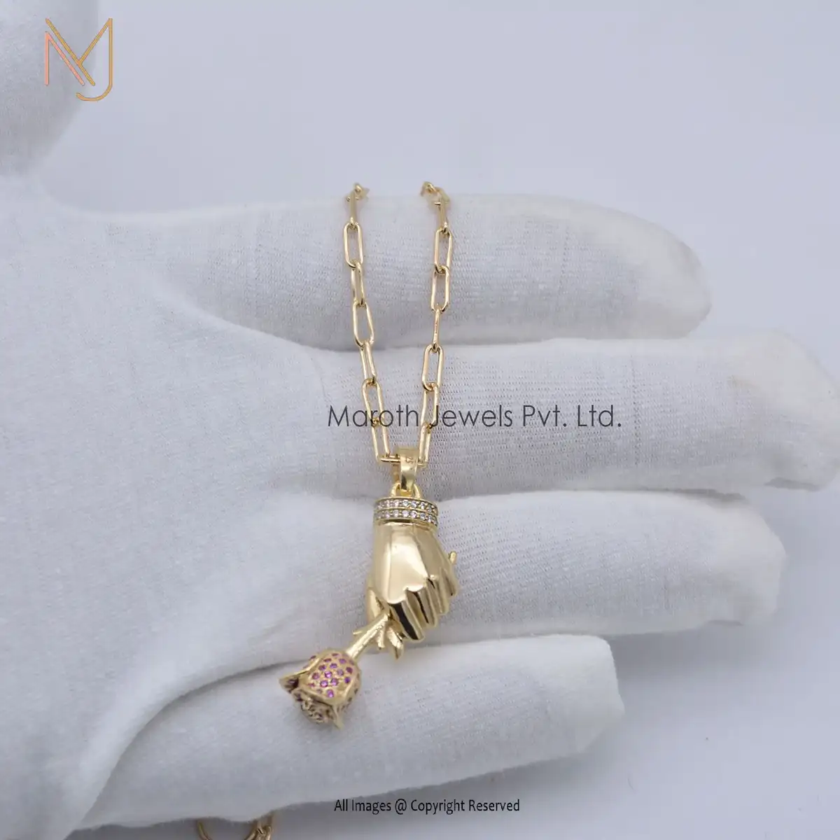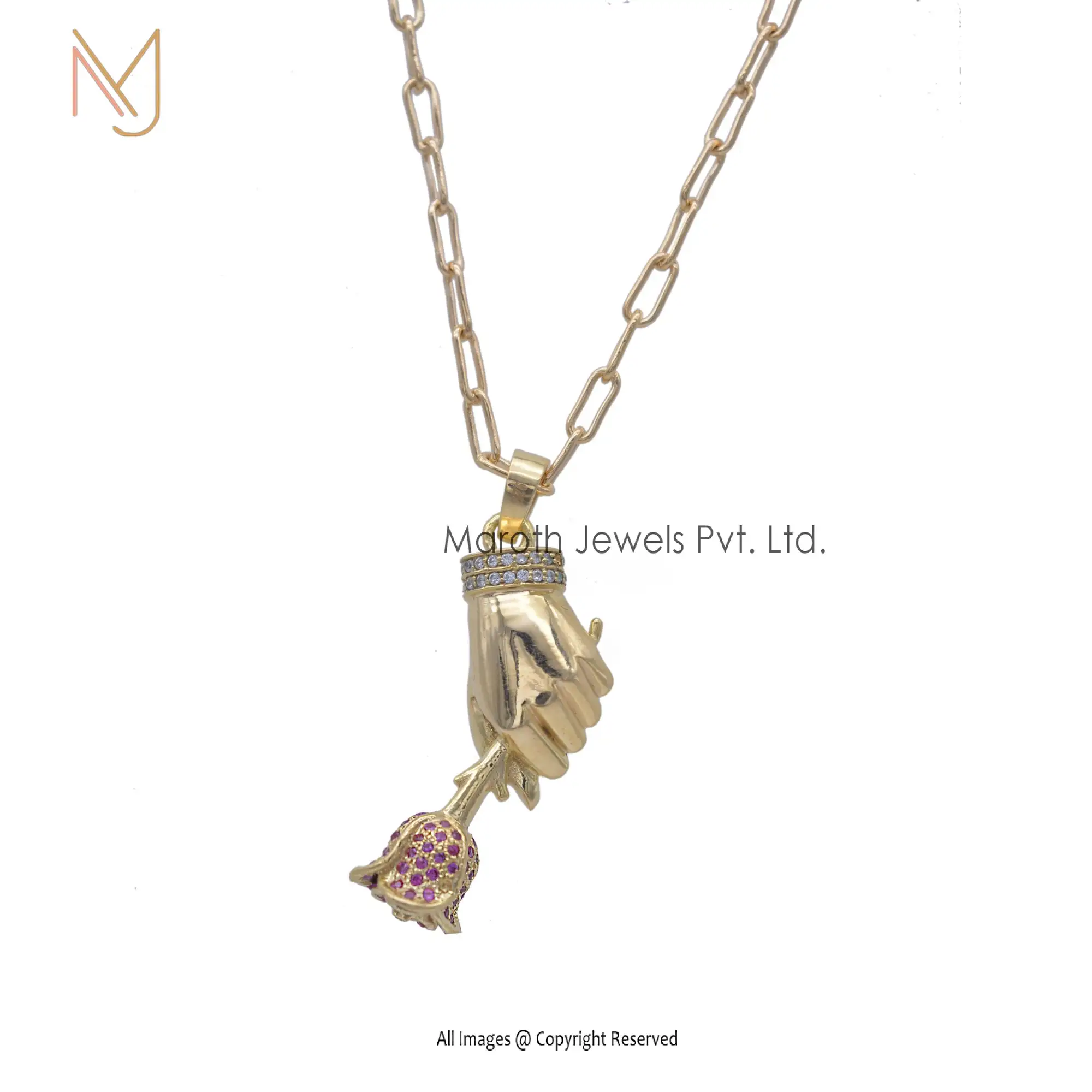 14K Yellow Gold Designer White Diamond And Pink Sapphire Gemstone Pendant Manufacturer