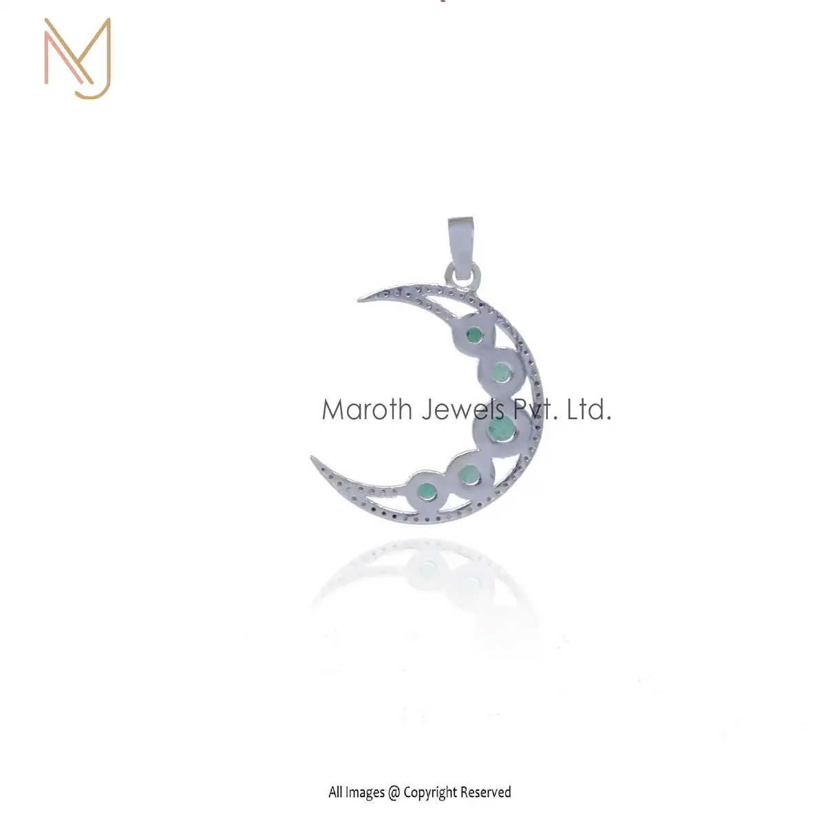 14K Yellow Gold Diamond And Emerald Gemstone Moon Pendant Manufacturer