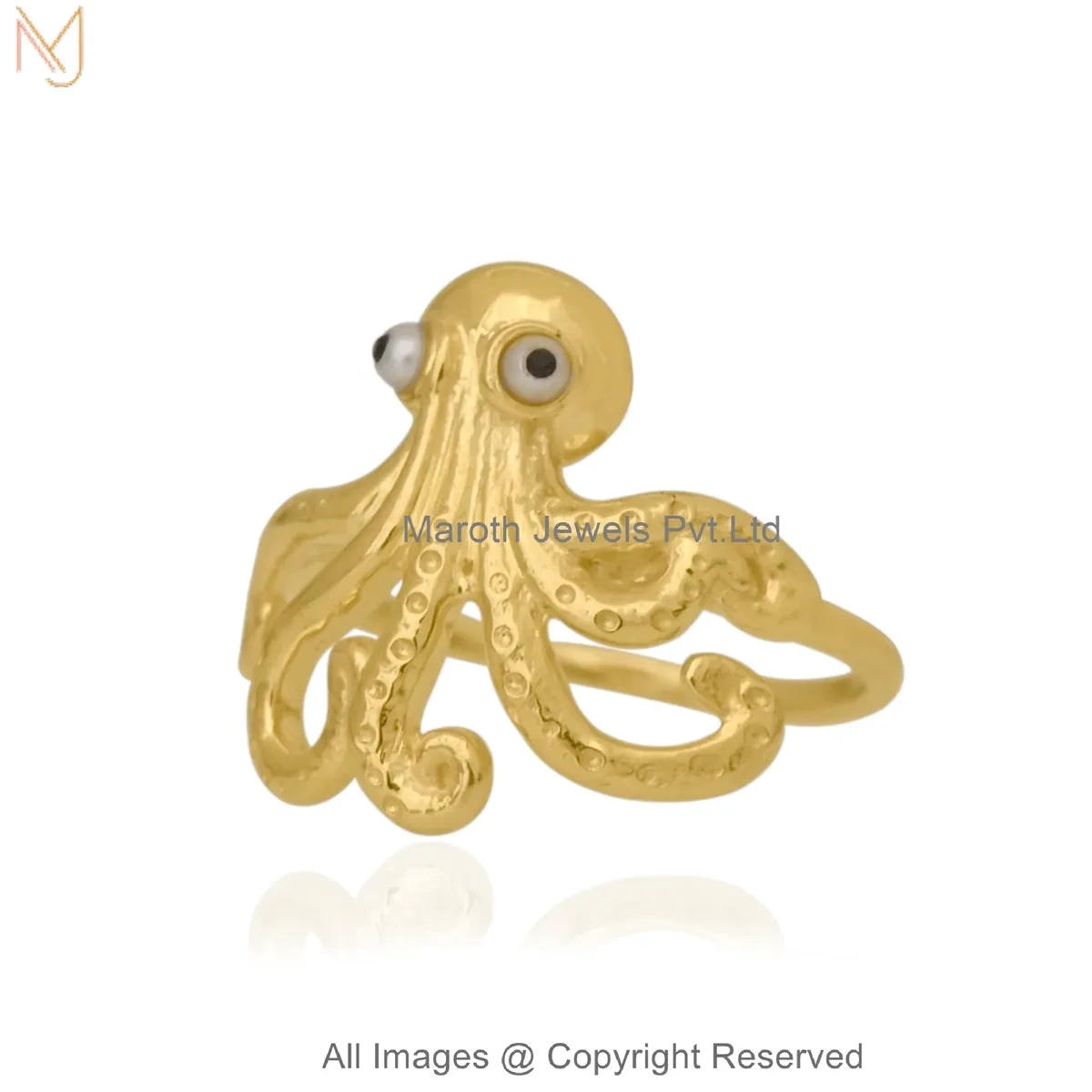 14K Yellow Gold Diamond Black Cubic Zircon And Pearl Octopus Ring Custom Jewelry