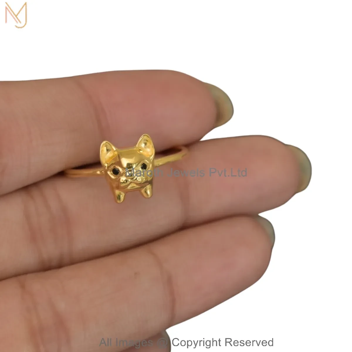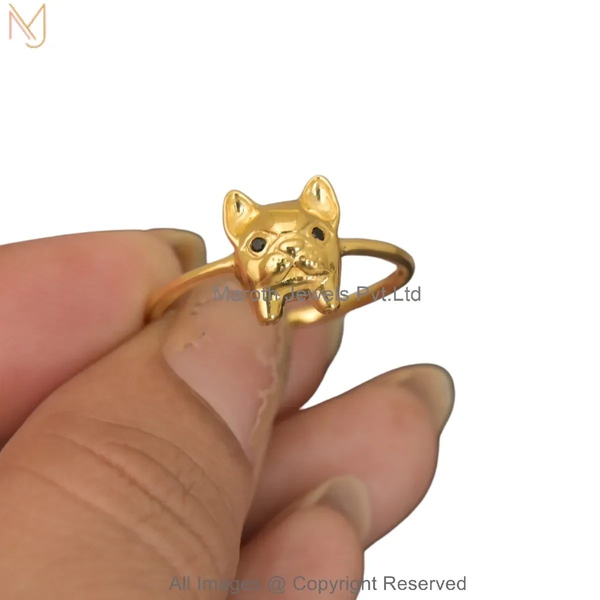 14K Yellow Gold Diamond Black Cubic Zircon Gold Bulldog Ring Manufacturer