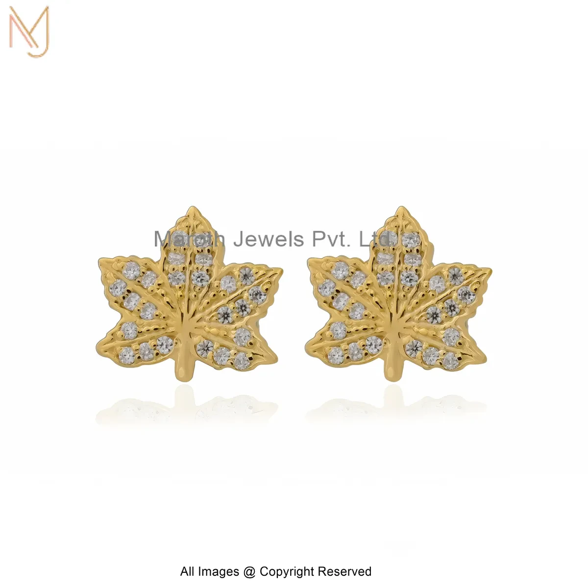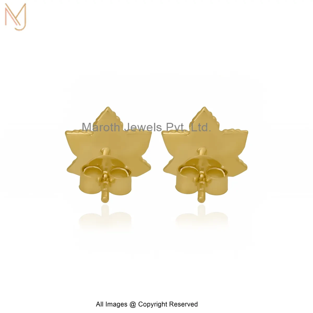 14K Yellow Gold Diamond Cannabis Leafs Stud Earring Manufacturer