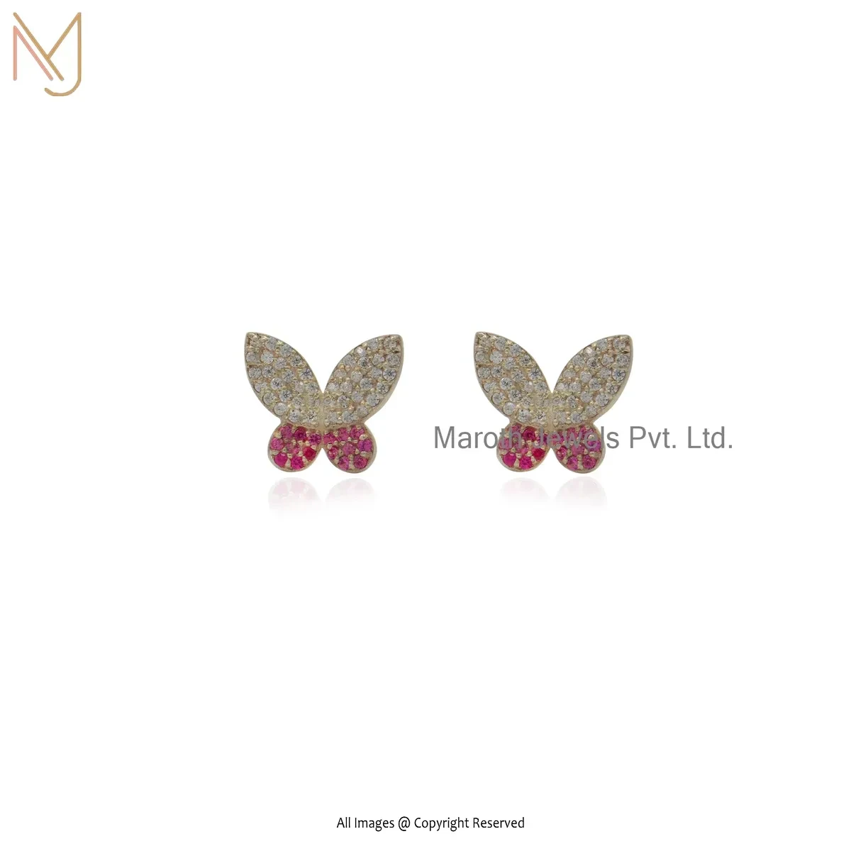 14K Yellow Gold Diamond Cubic Zircon Butterfly Stud Earring Manufacturer