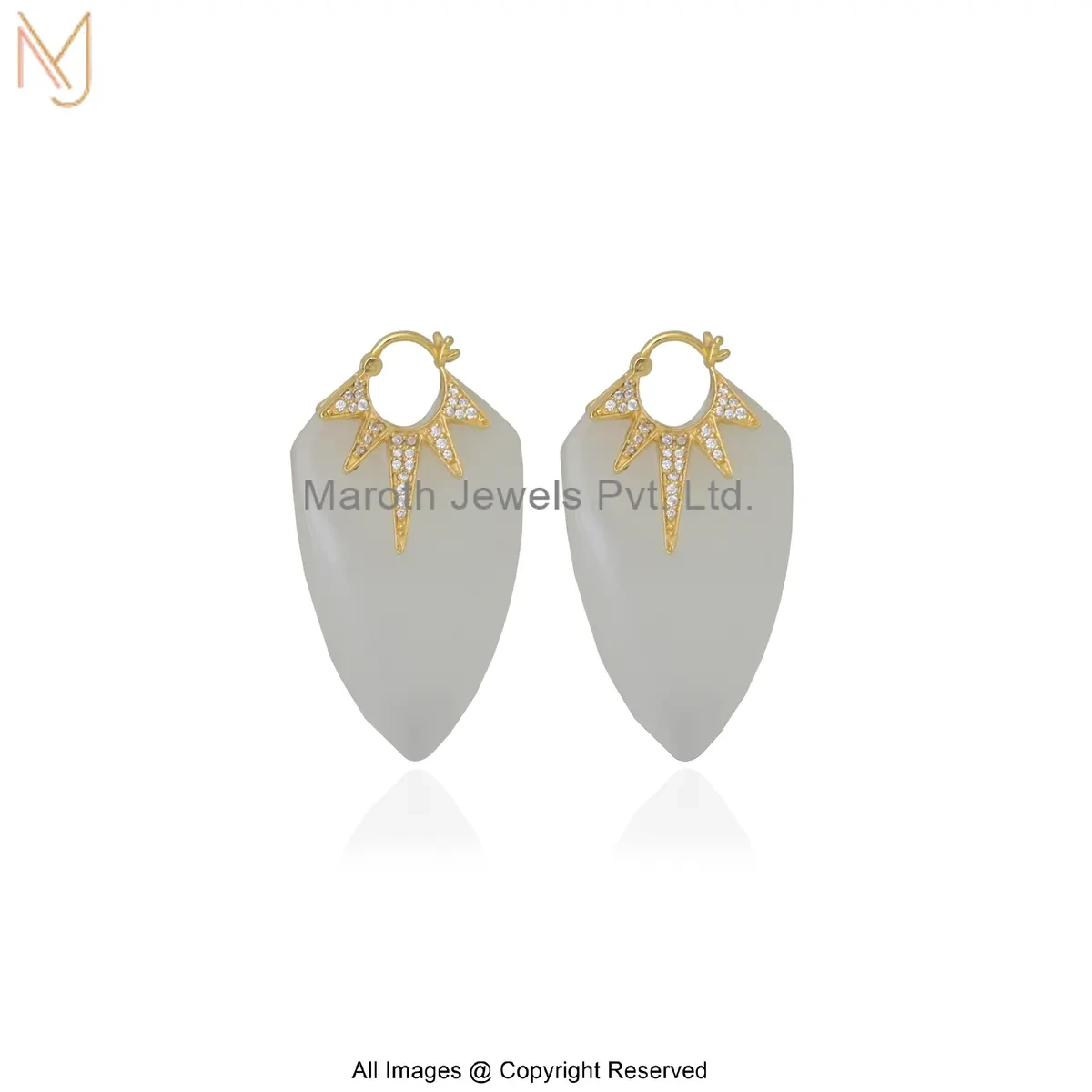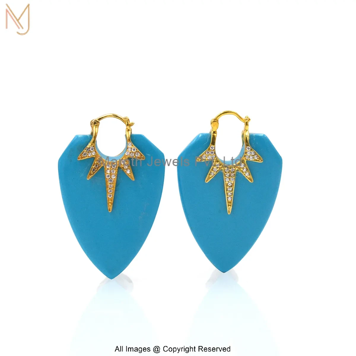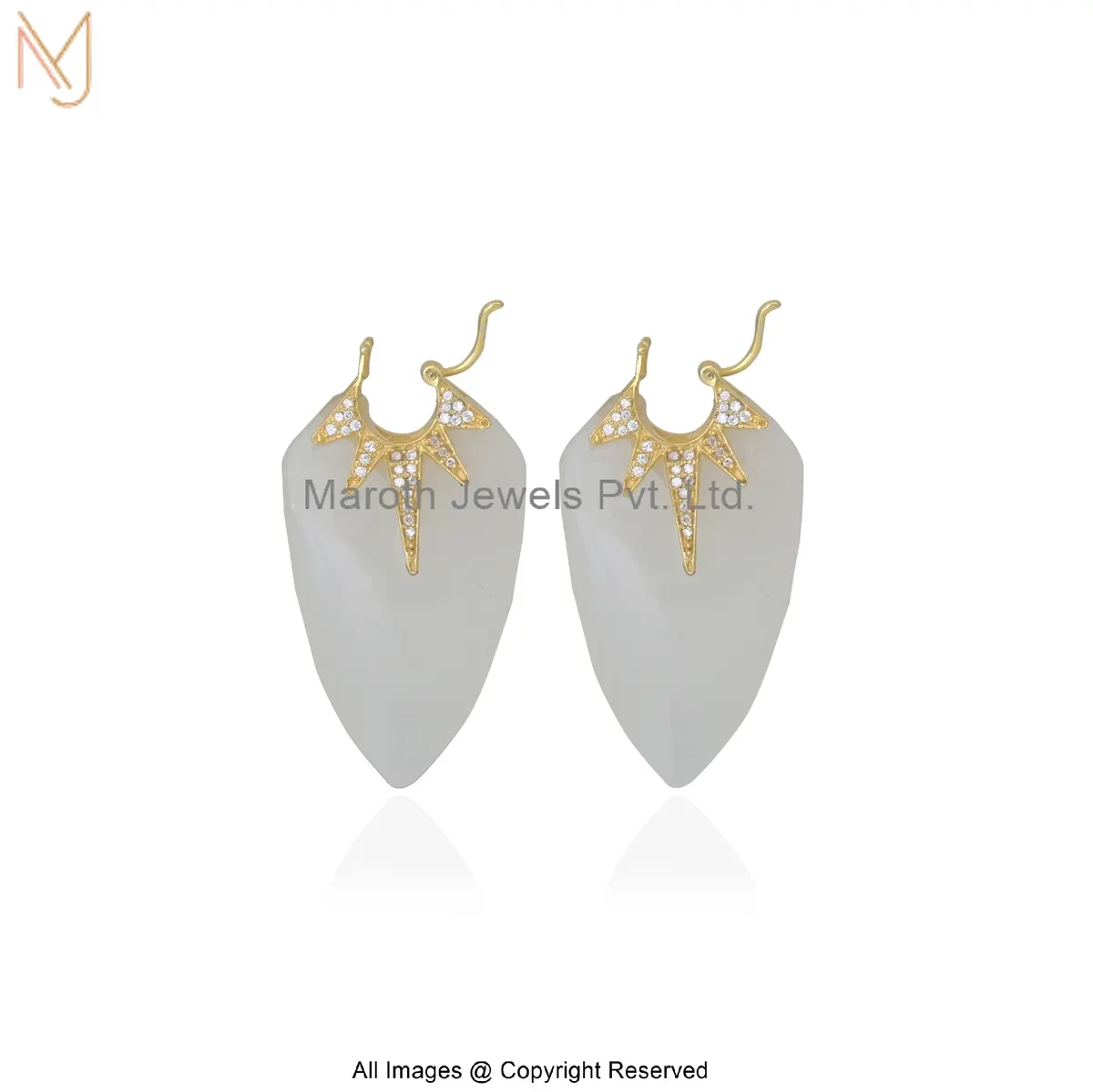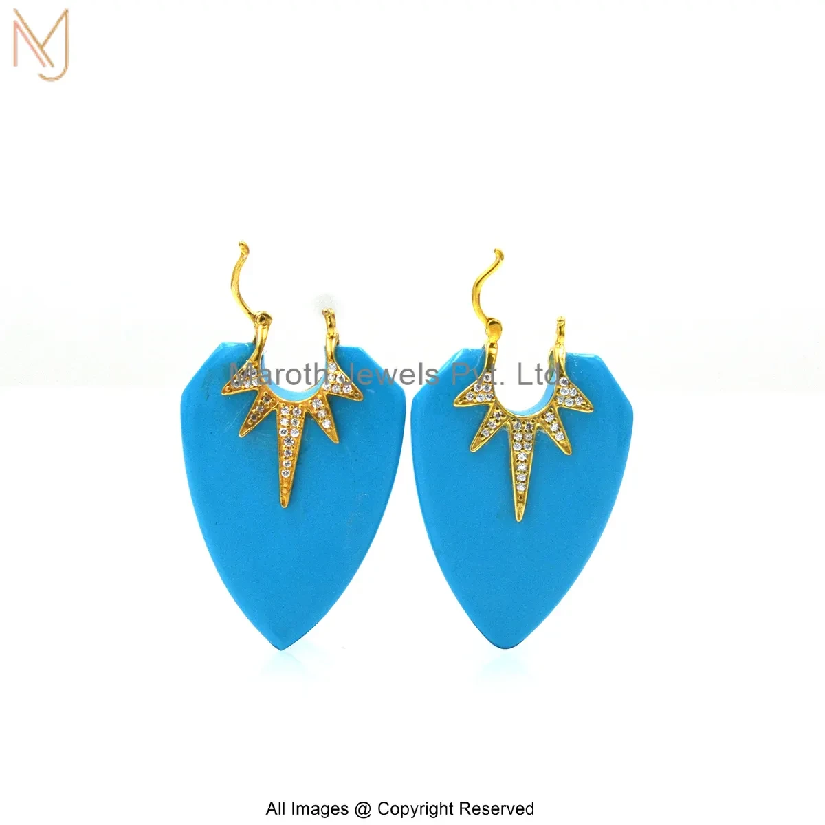 14K Yellow Gold Diamond Cubic Zircon Gemstone Shield Drop Earrings Custom Jewelry