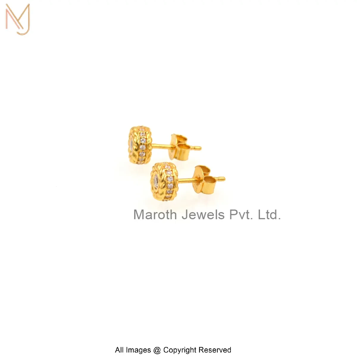 14K Yellow Gold Diamond Cubic Zircon Gold Circle Stud Earrings Jewelry Supplier