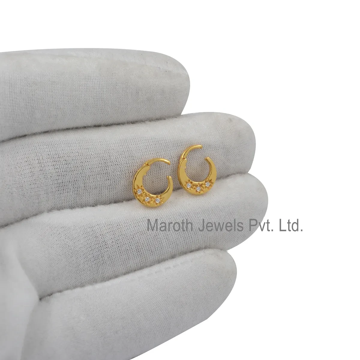 14K Yellow Gold Diamond Cubic Zircon Huggie Hoop Earring Manufacturer