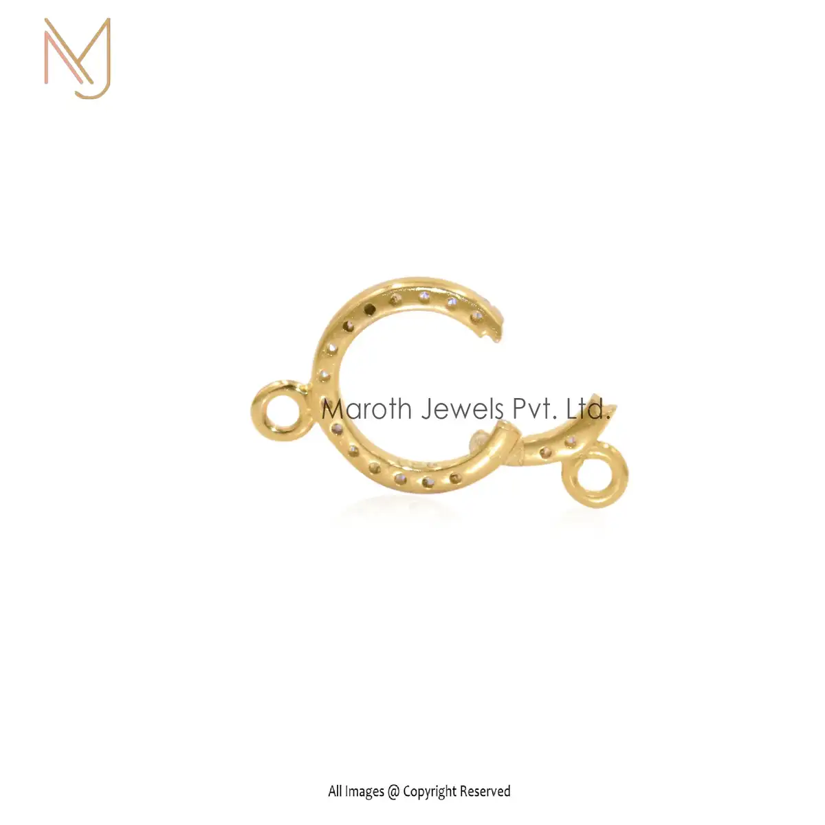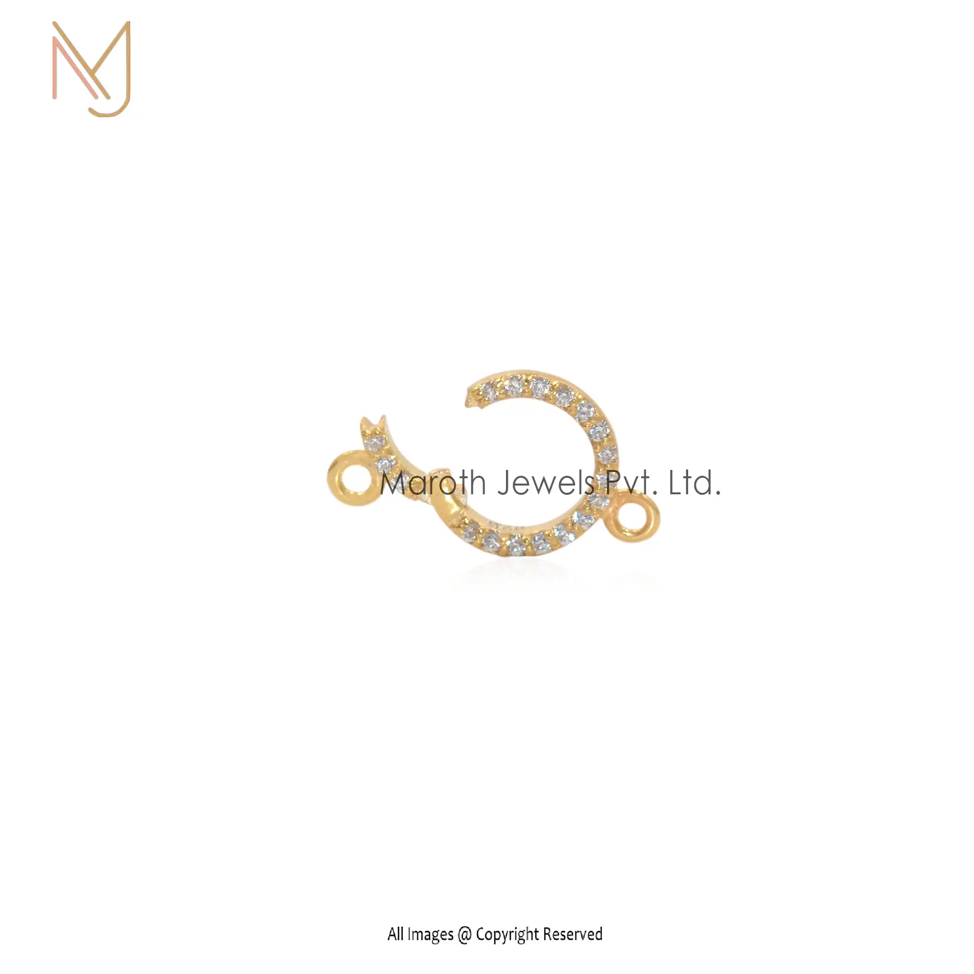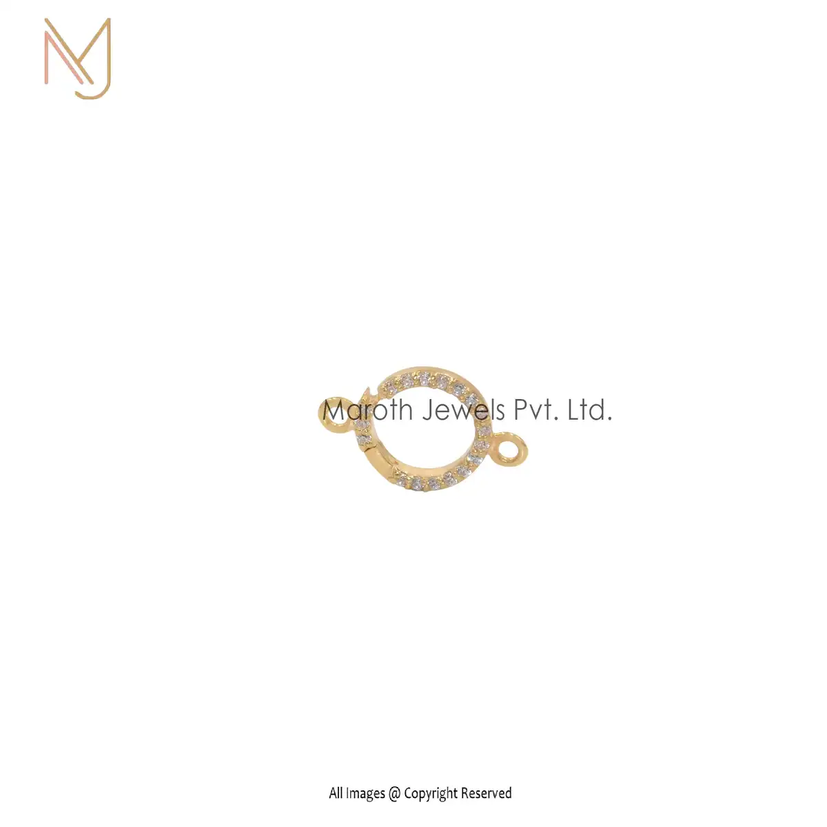 14K Yellow Gold Diamond Cubic Zircon Pavé Circle Charm Holder Jewelry Supplier