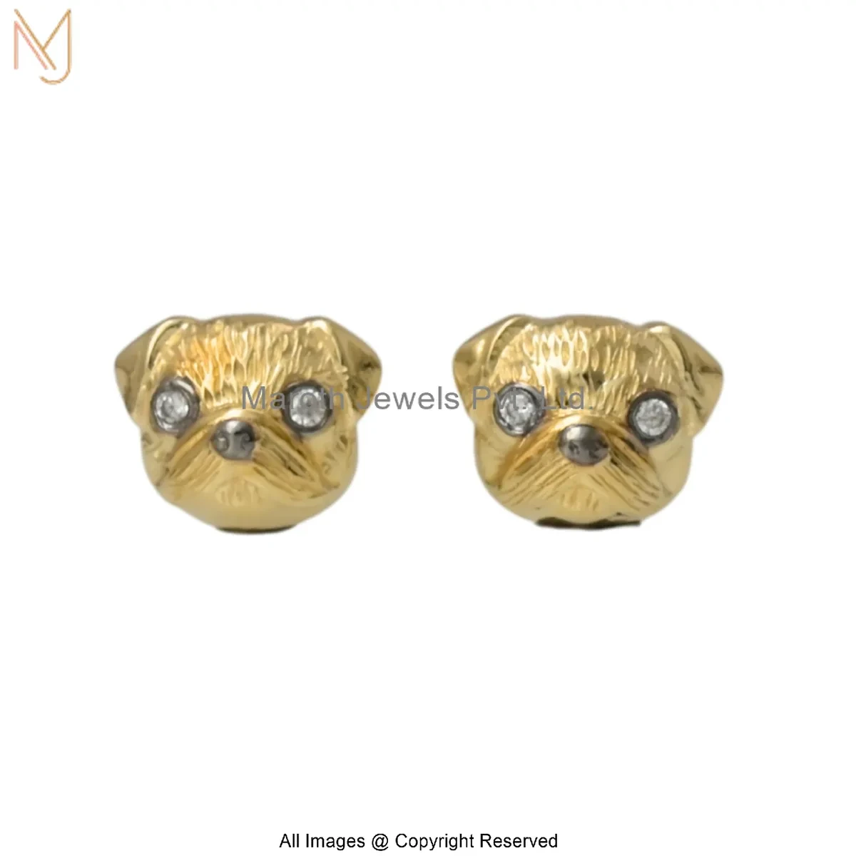 14K Yellow Gold Diamond Cubic Zircon Pug Face Stud Earring Jewelry Supplier