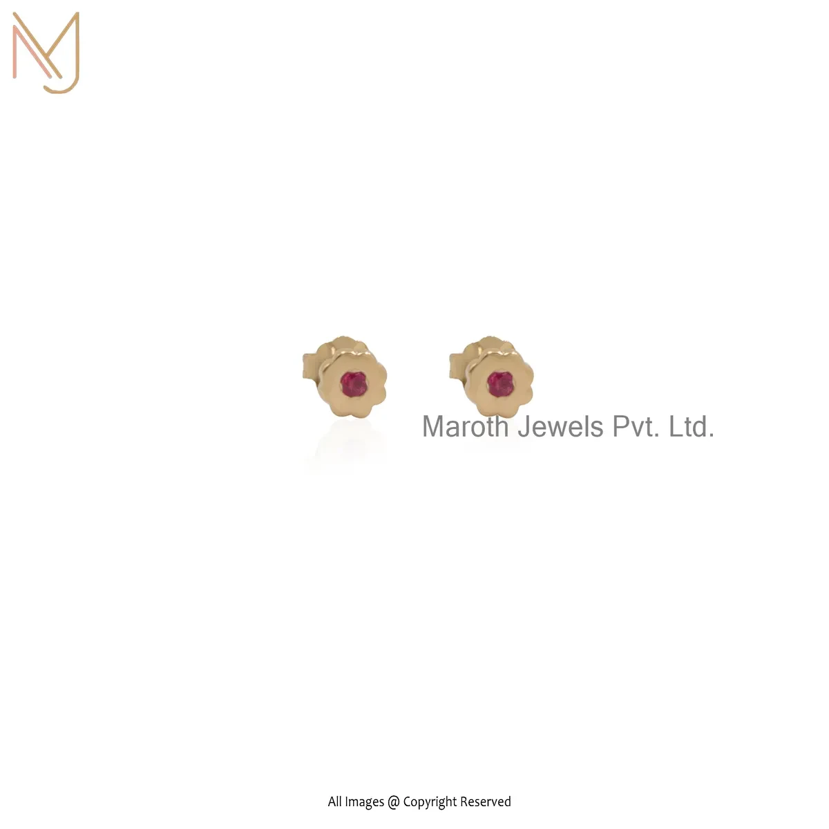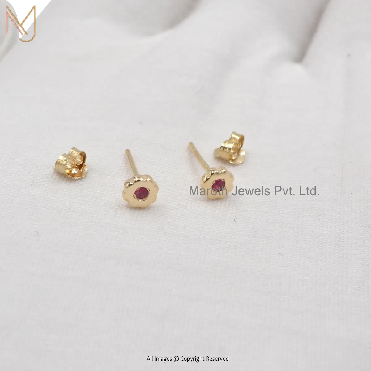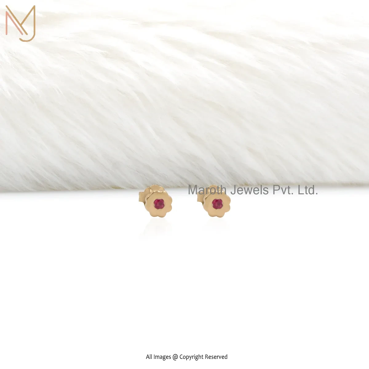 14K Yellow Gold Diamond Flower Stud Earring Manufacturer