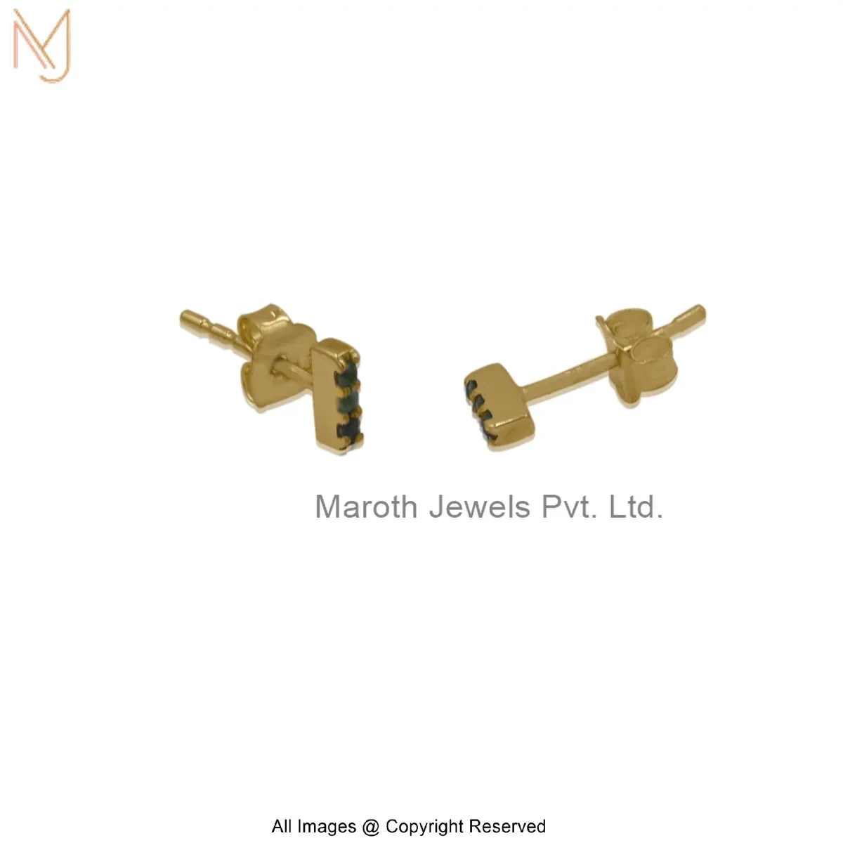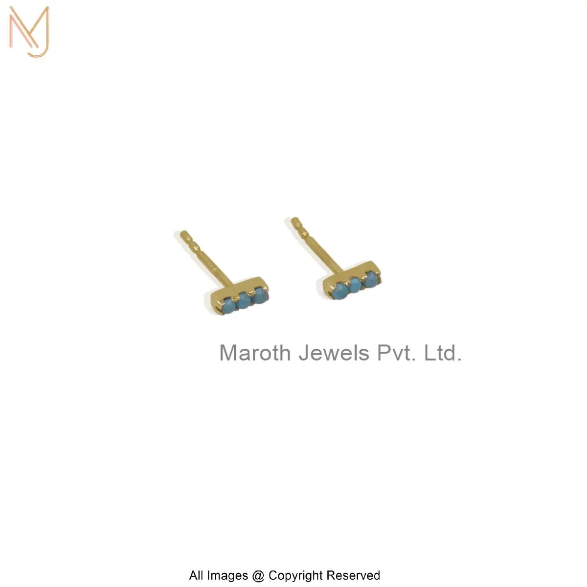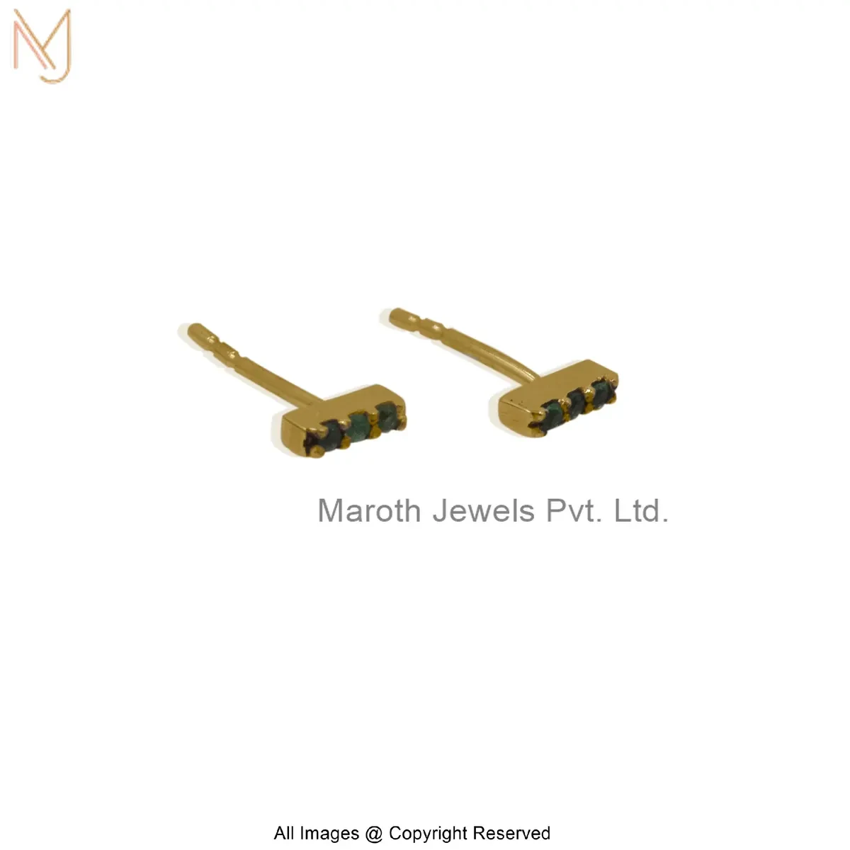 14K Yellow Gold Diamond Gemstone Bar Stud Earring Jewelry Supplier