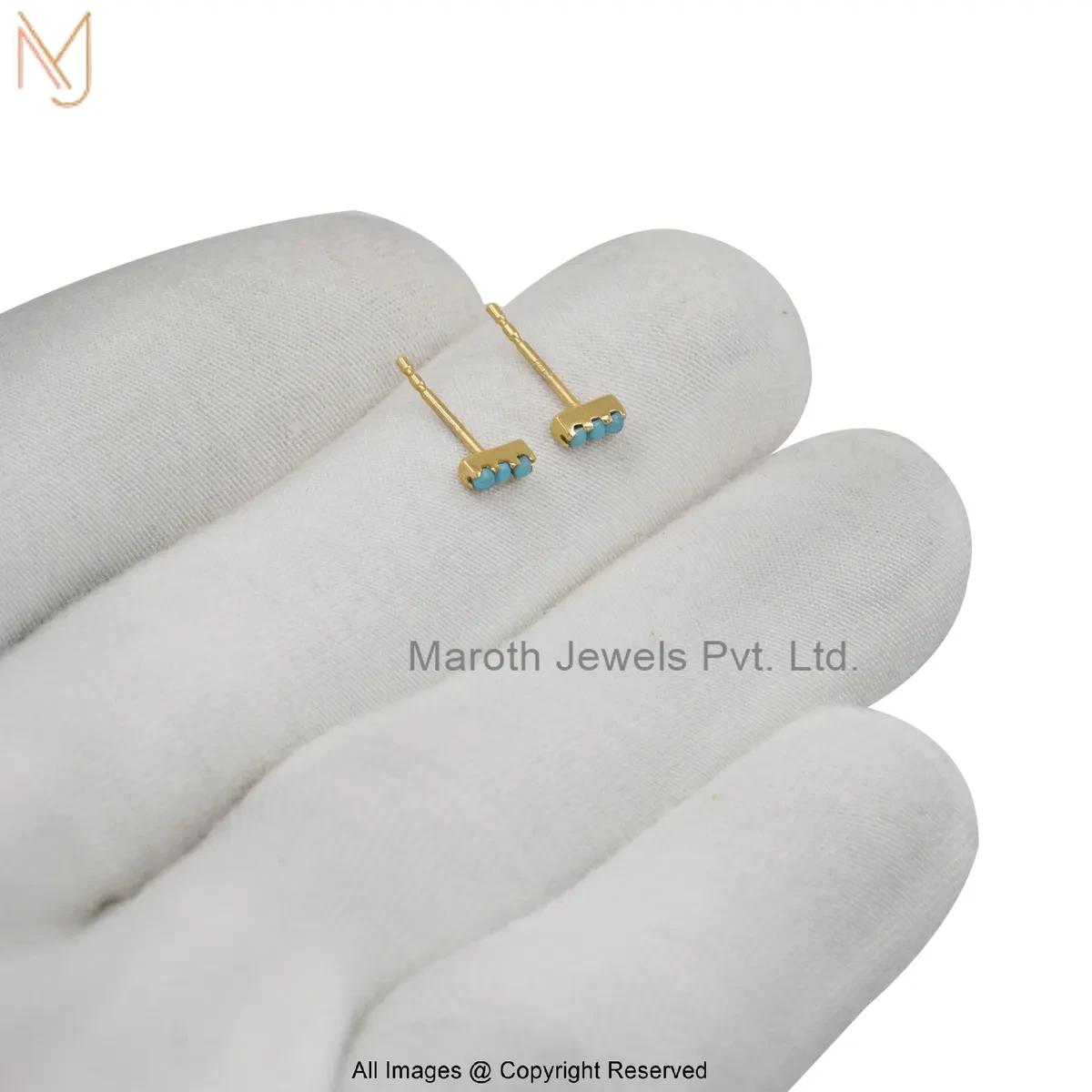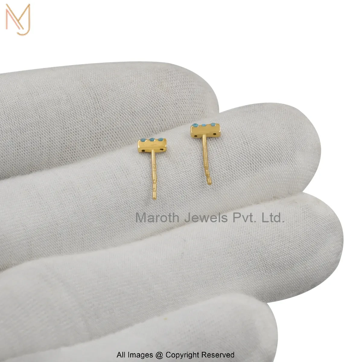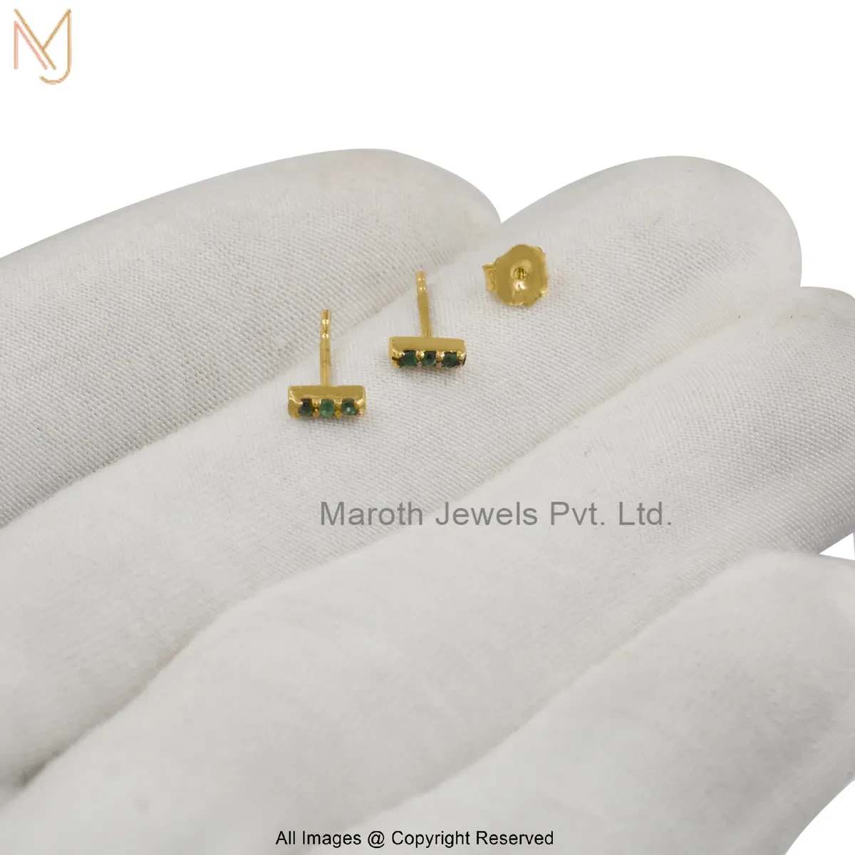 14K Yellow Gold Diamond Gemstone Bar Stud Earring Jewelry Supplier