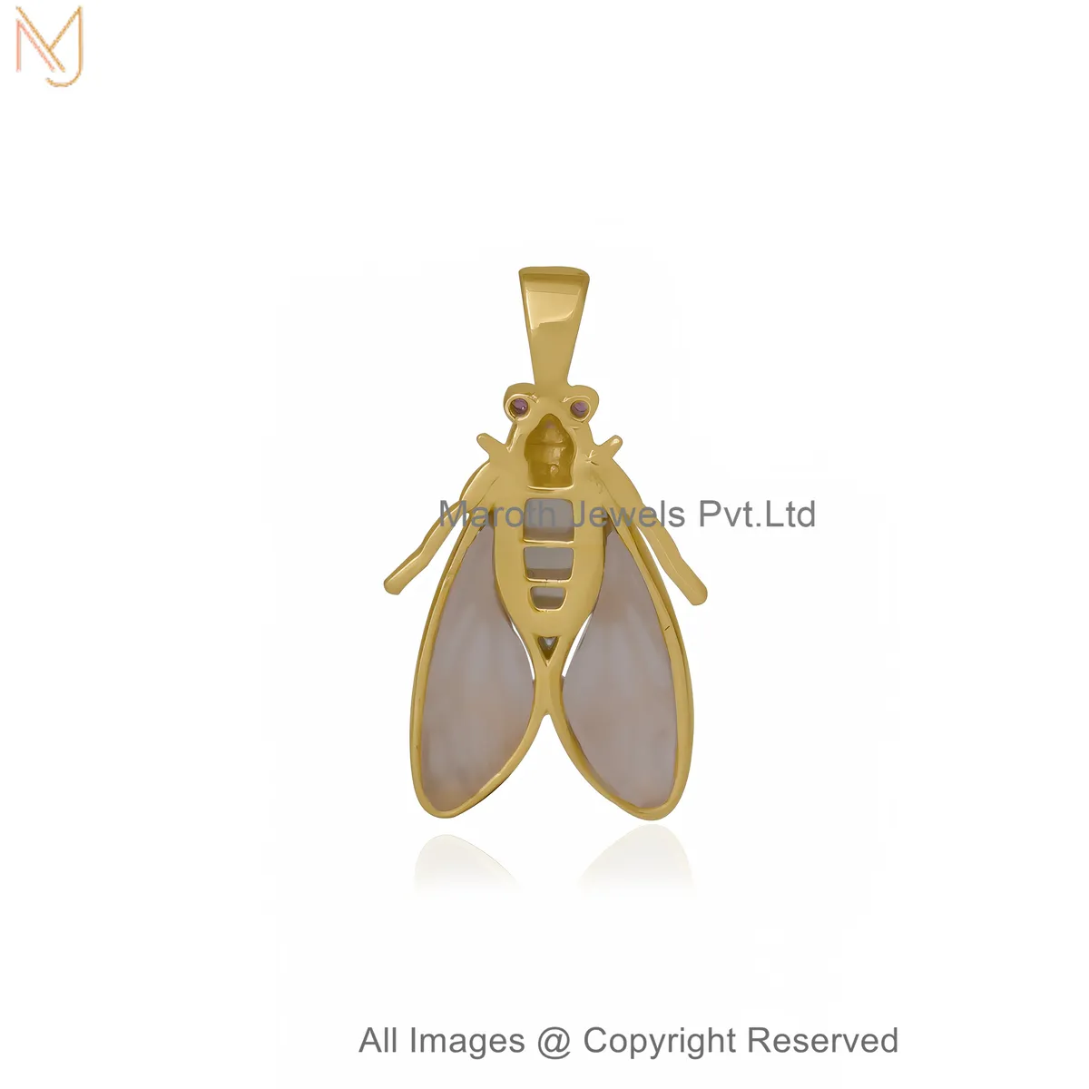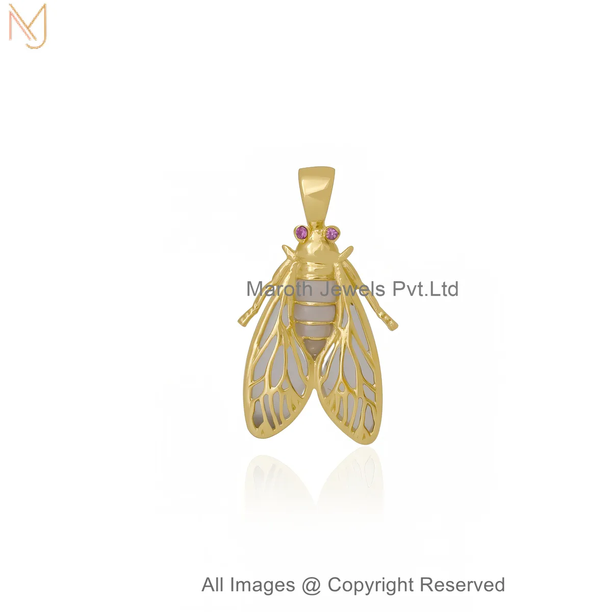 14K Yellow Gold Diamond Gemstone Cicada Charm Pendant Custom Jewelry