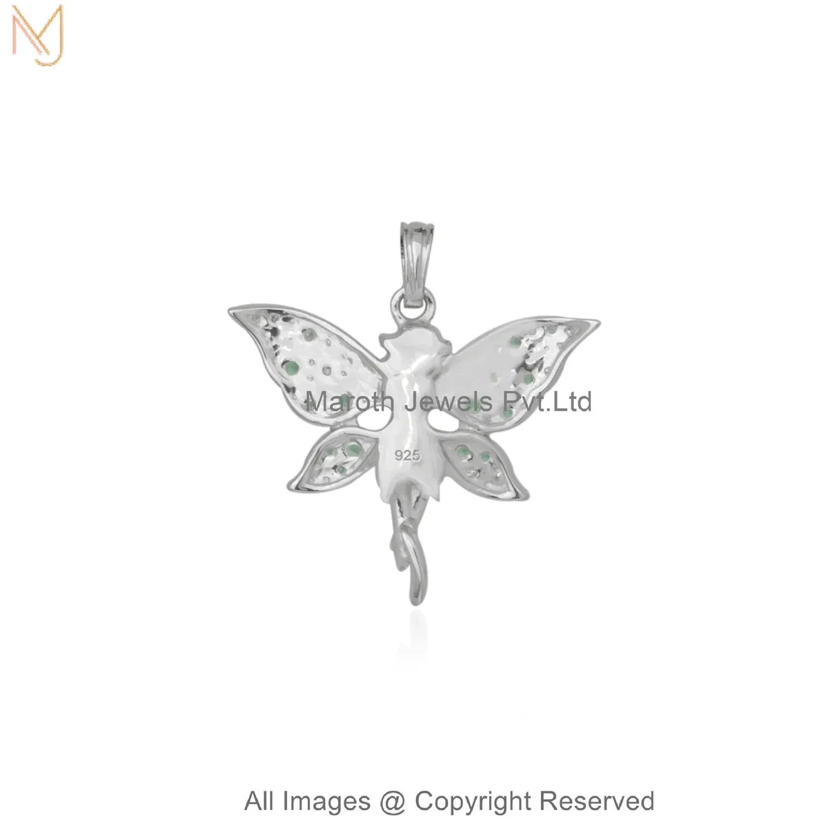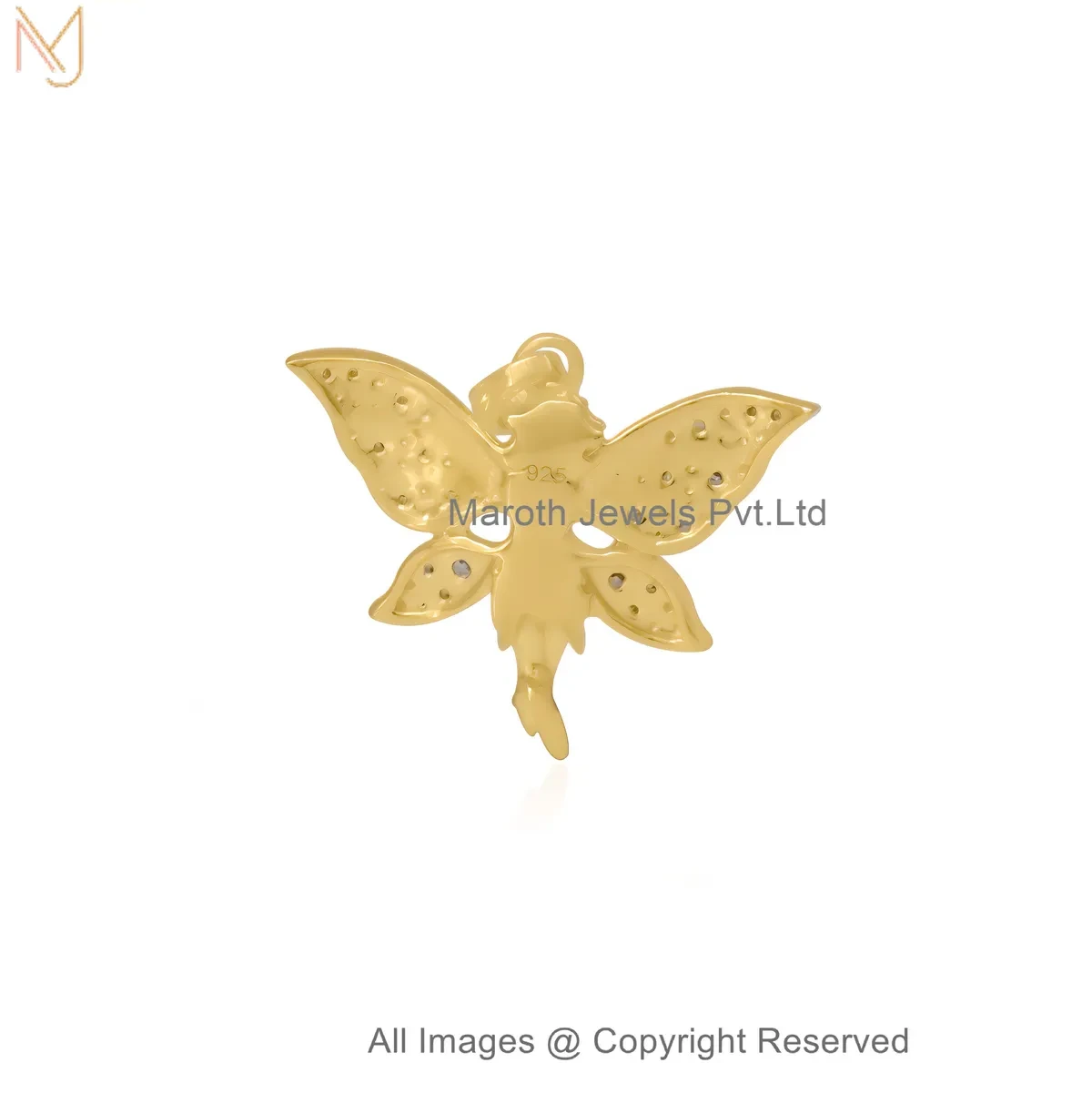 14K Yellow Gold Diamond Gemstone Fairy Wing Pendant Manufacturer