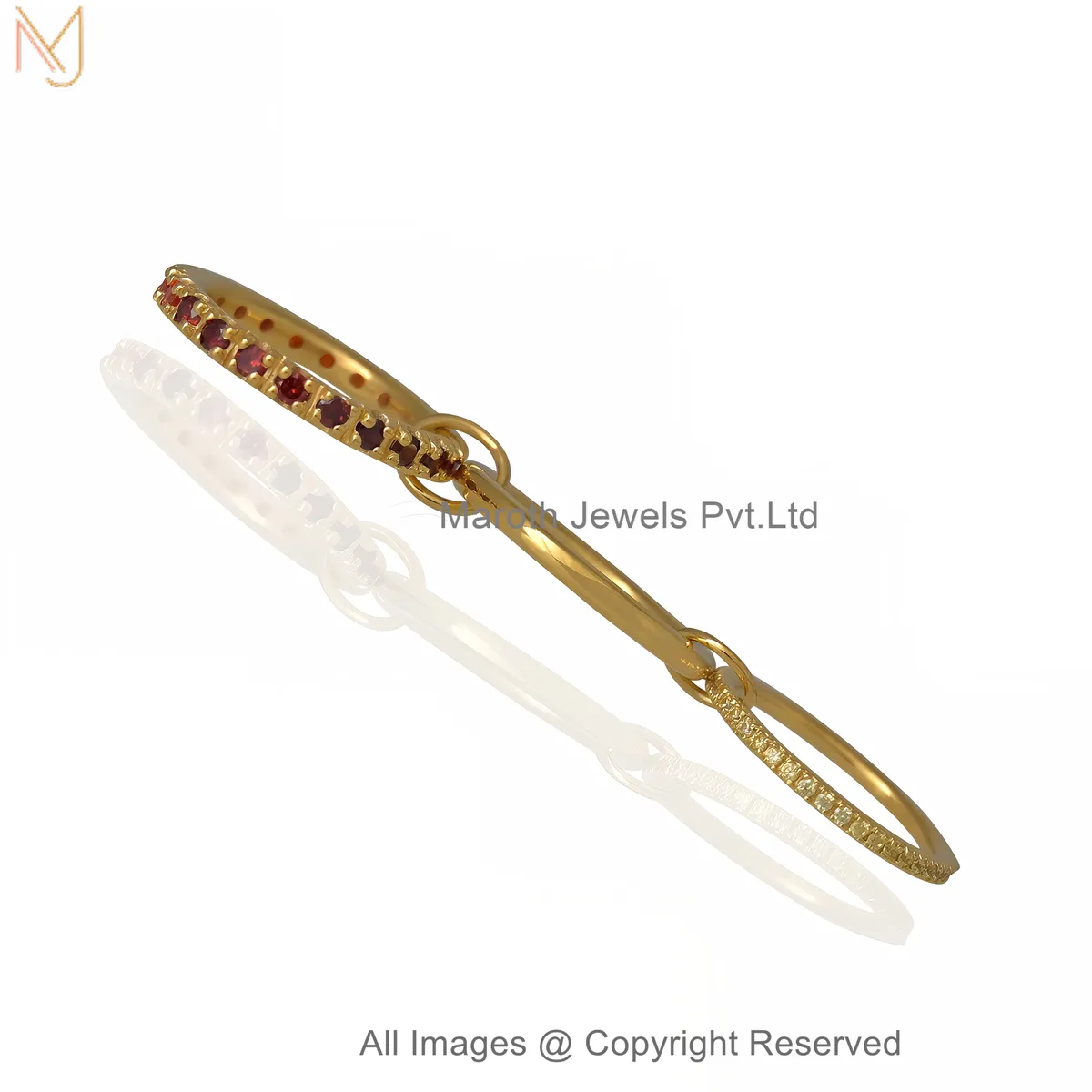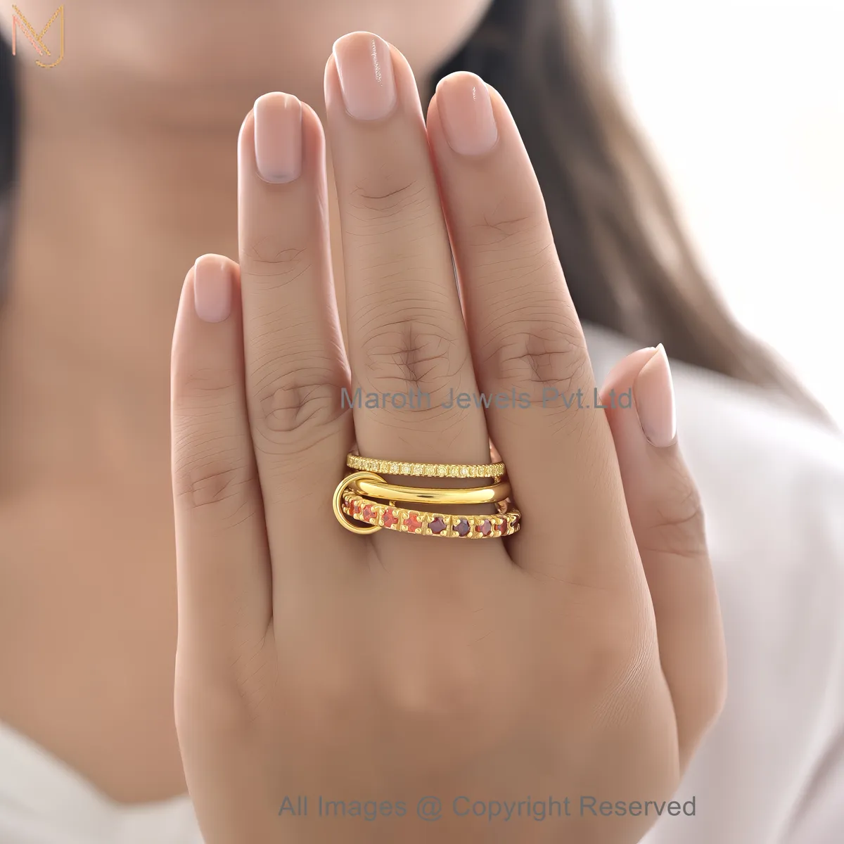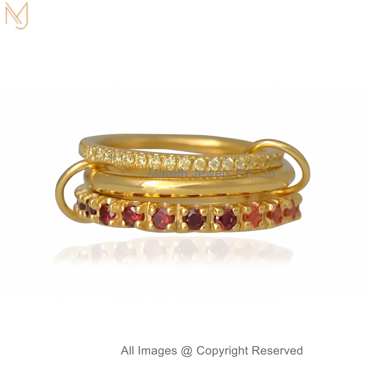 14K Yellow Gold Diamond Gemstone Multi-Link Connector Ring Custom Jewelry