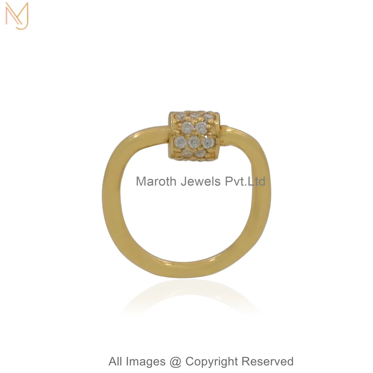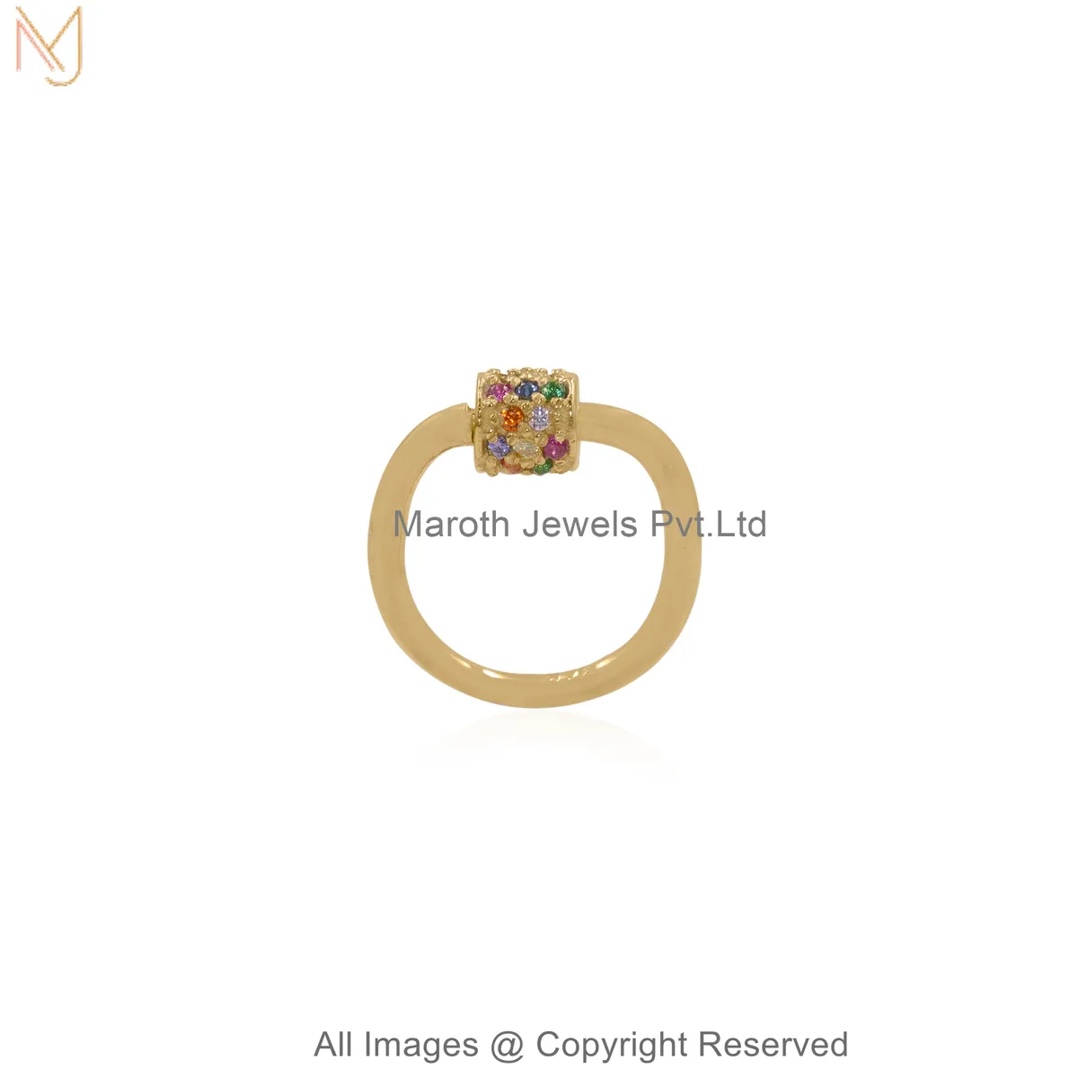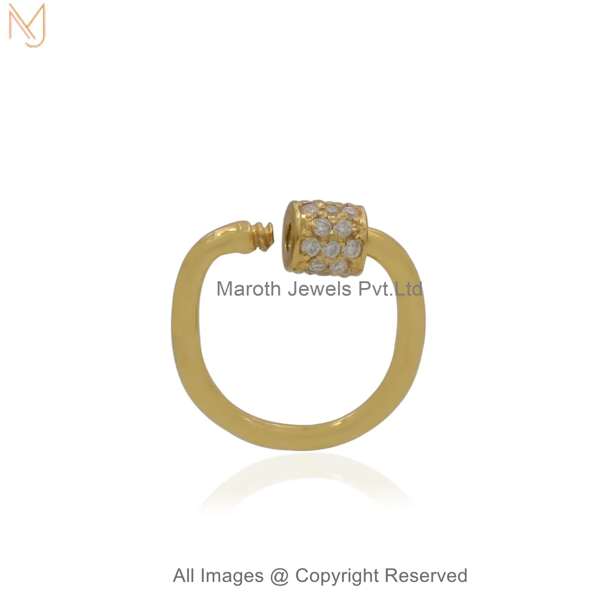 14K Yellow Gold Diamond Gemstone Pavé Stone Carabiner Lock Custom Jewelry