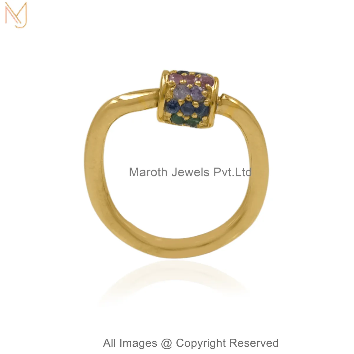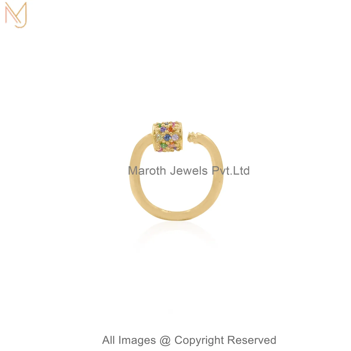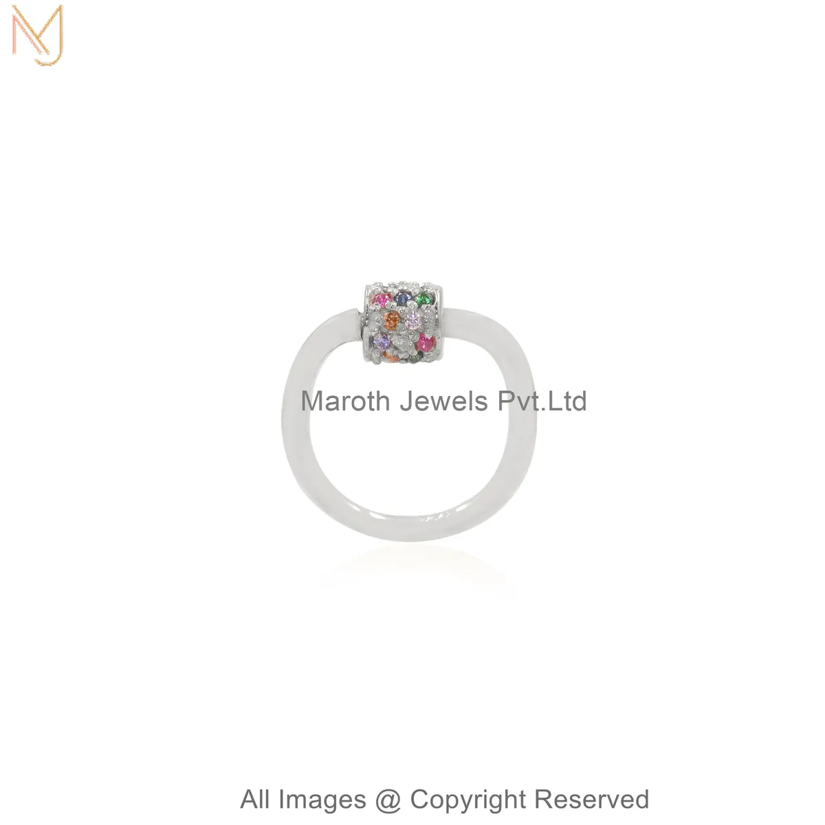 14K Yellow Gold Diamond Gemstone Pavé Stone Carabiner Lock Custom Jewelry