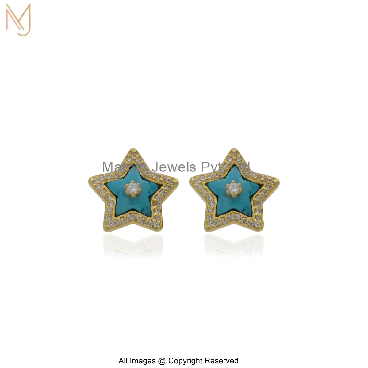 14K Yellow Gold Diamond Gemstone Star Stud Earring Manufacturer