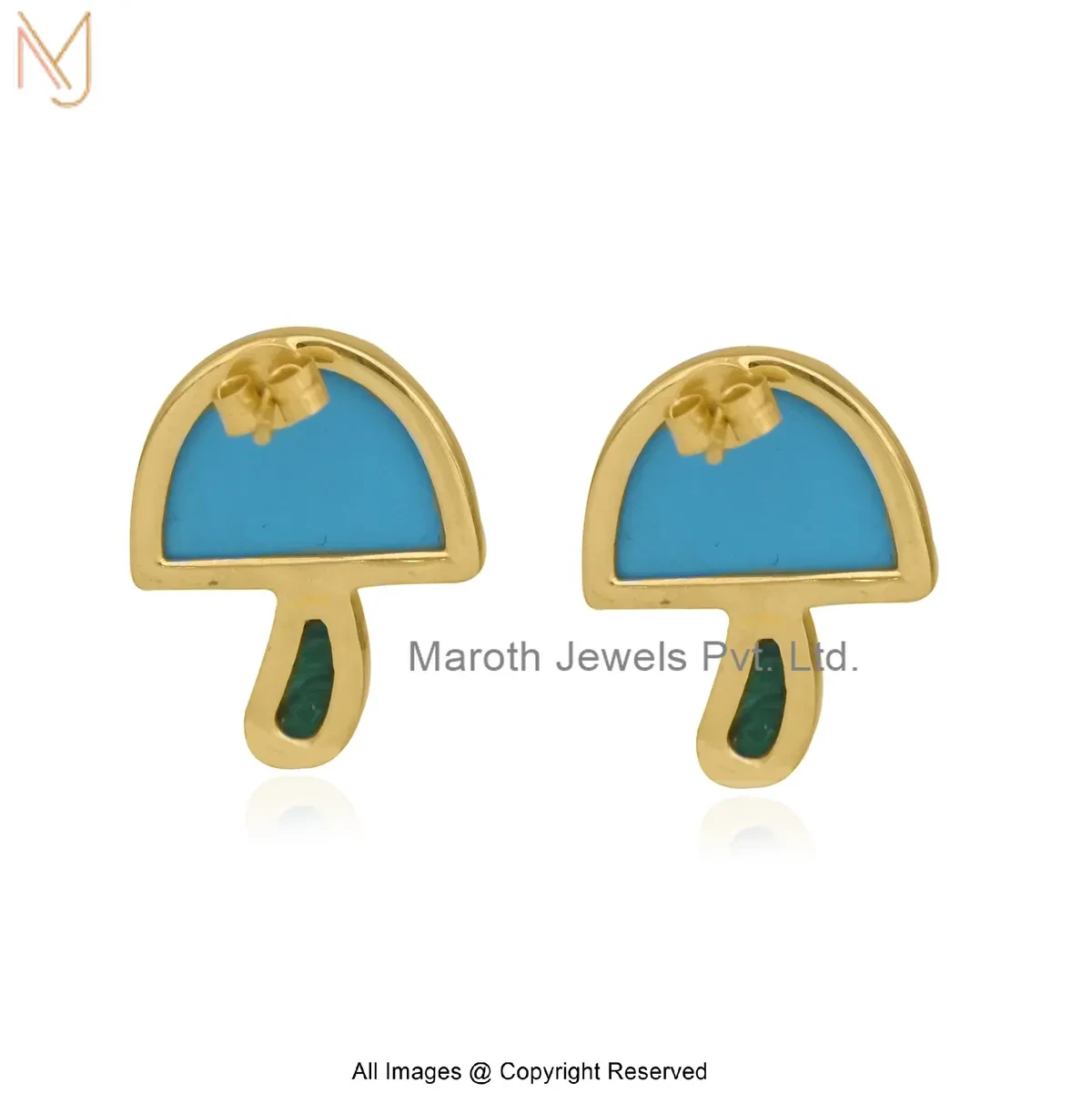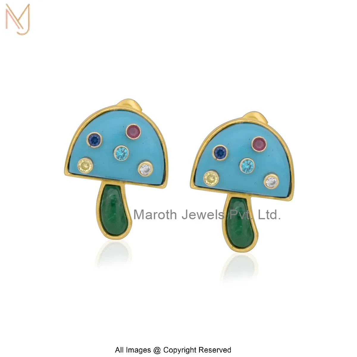 14K Yellow Gold Diamond Gemstones Mushroom Stud Earring Jewelry Supplier