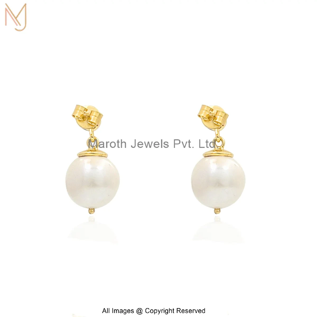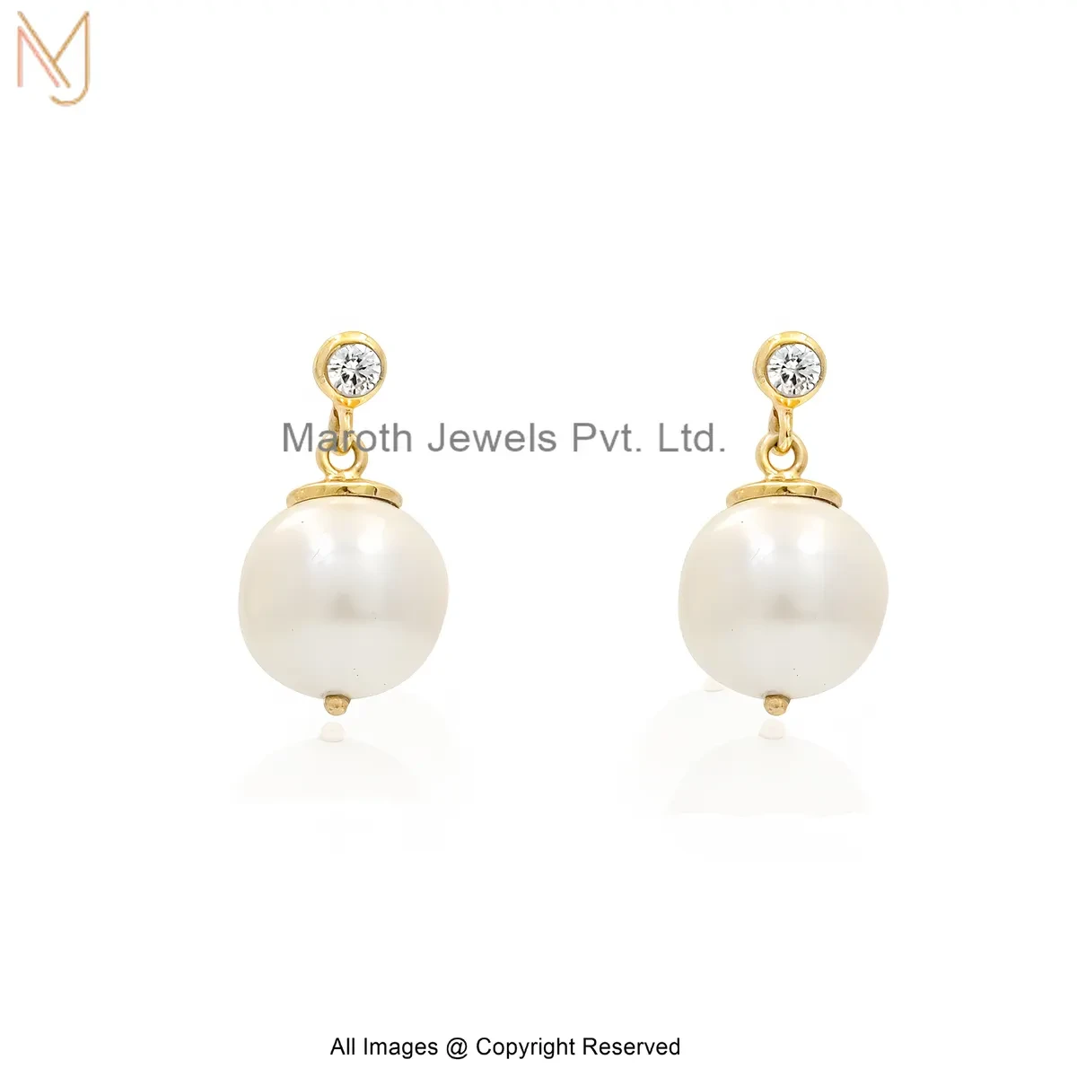 14K Yellow Gold Diamond Gold-Toned Pearl Drop Earrings Manufacturer
