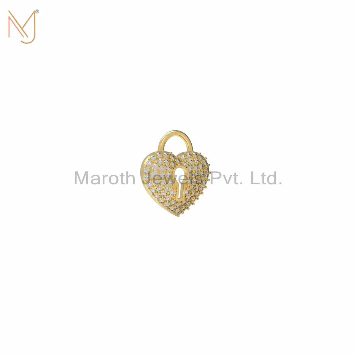 14K Yellow Gold Diamond Heart Lock Charm Pendant Jewelry Manufacturer