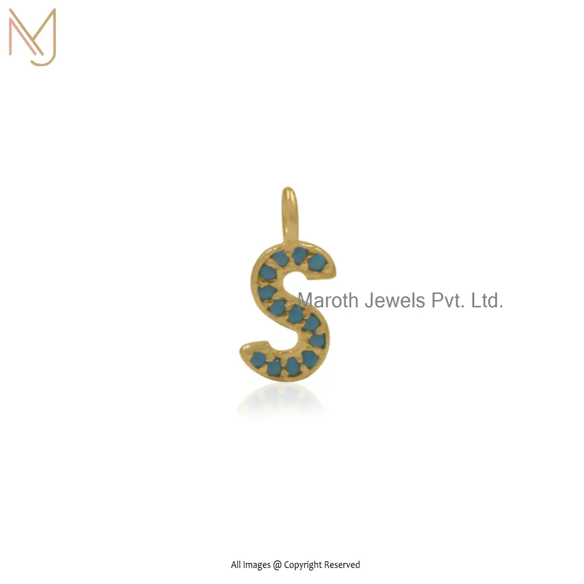 14K Yellow Gold Diamond Initial Multi Gemstone Letter Pendant Jewelry Supplier