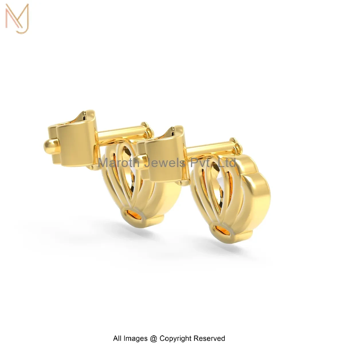 14K Yellow Gold Diamond Marquise Crown Stud Earrings Manufacturer