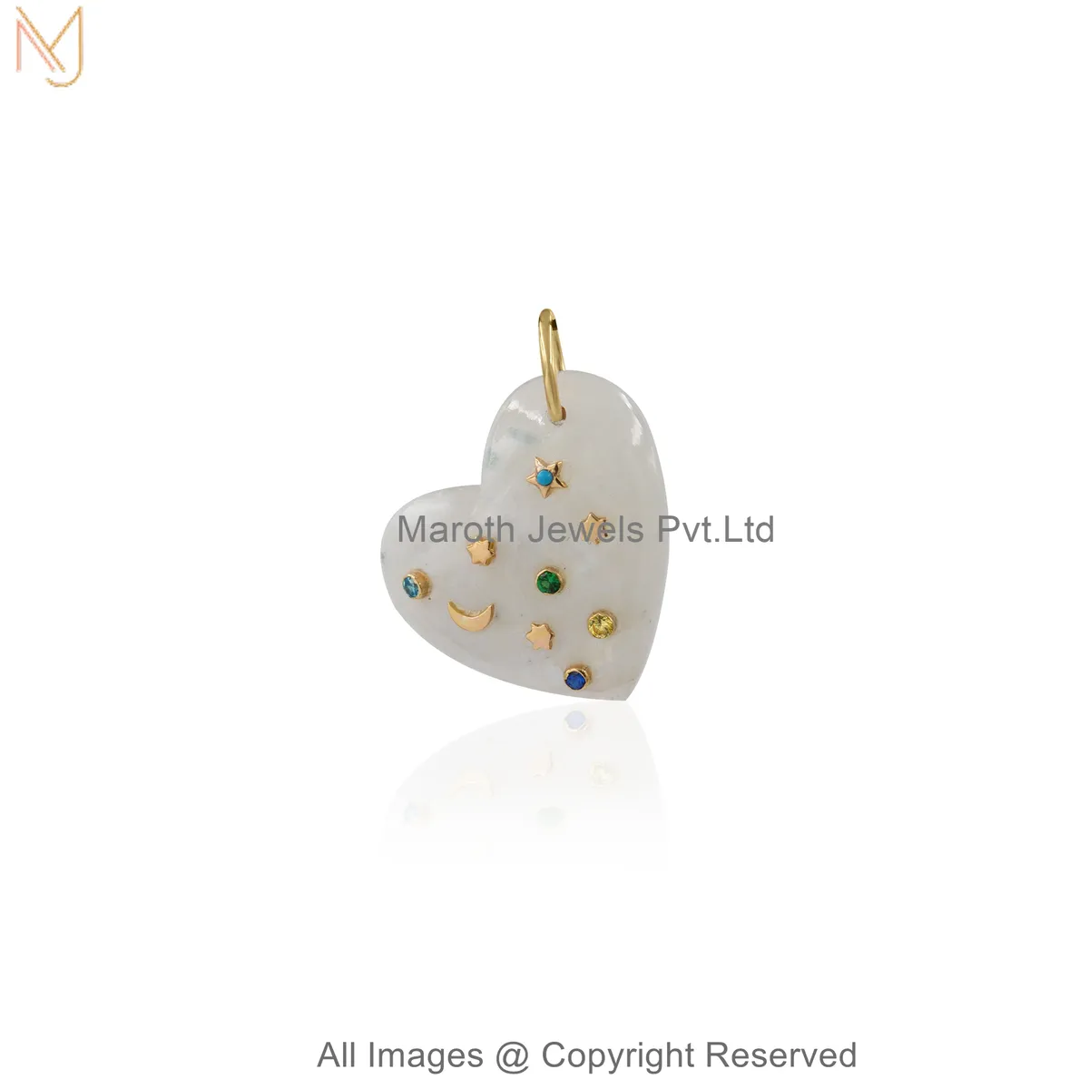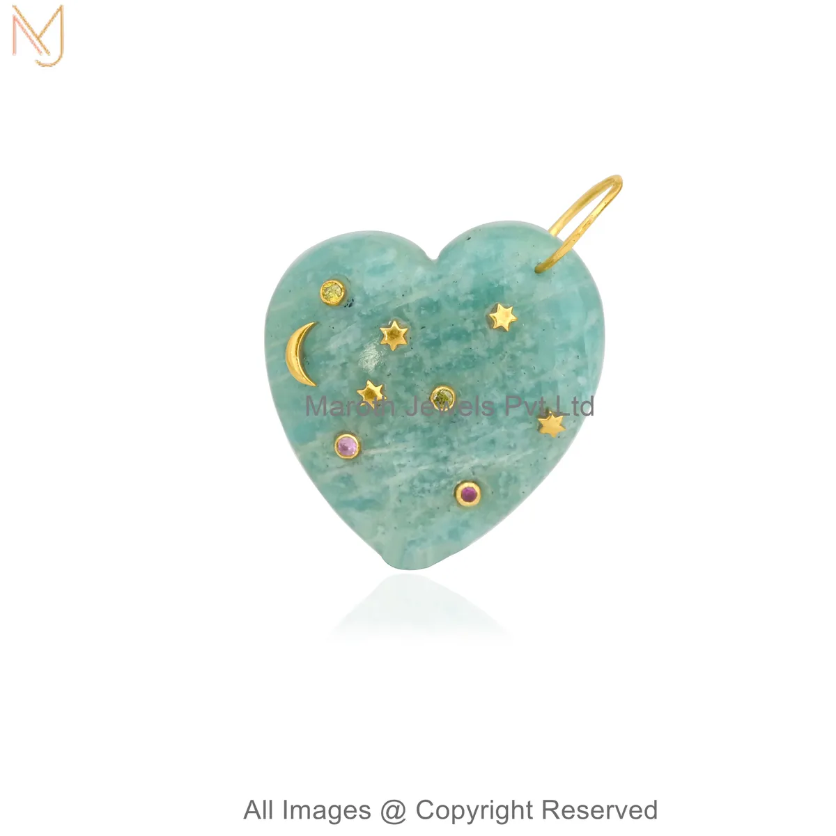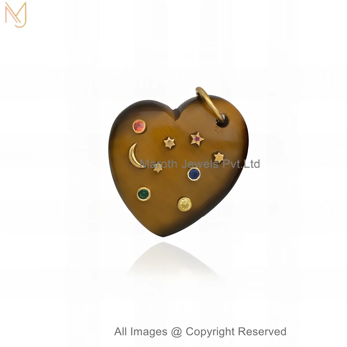 14K Yellow Gold Diamond Multi-Cubic Zircon Gemstone Heart Pendant Jewelry Supplier