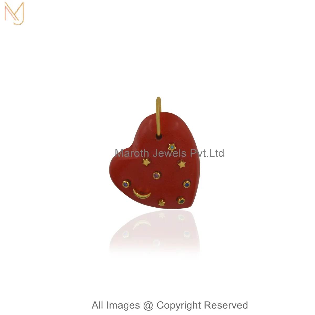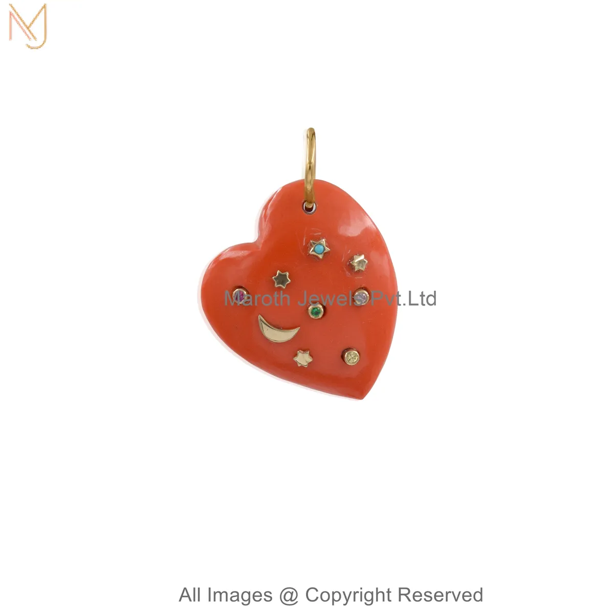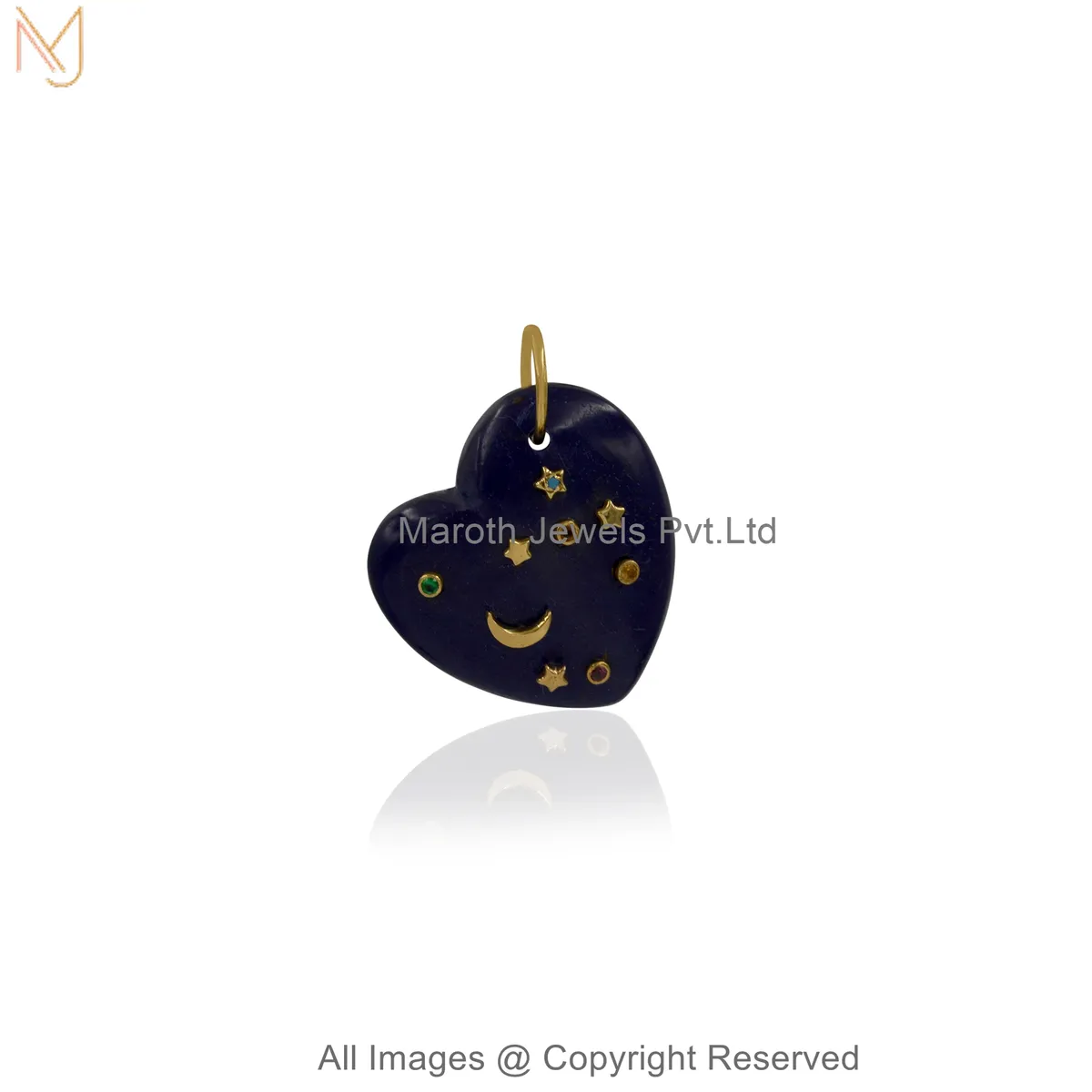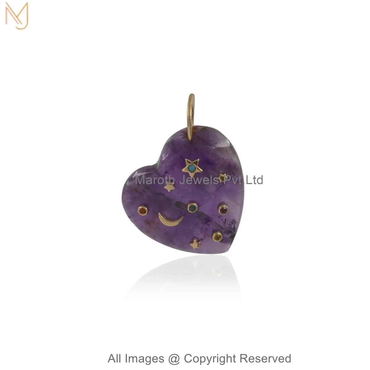 14K Yellow Gold Diamond Multi-Cubic Zircon Gemstone Heart Pendant Jewelry Supplier