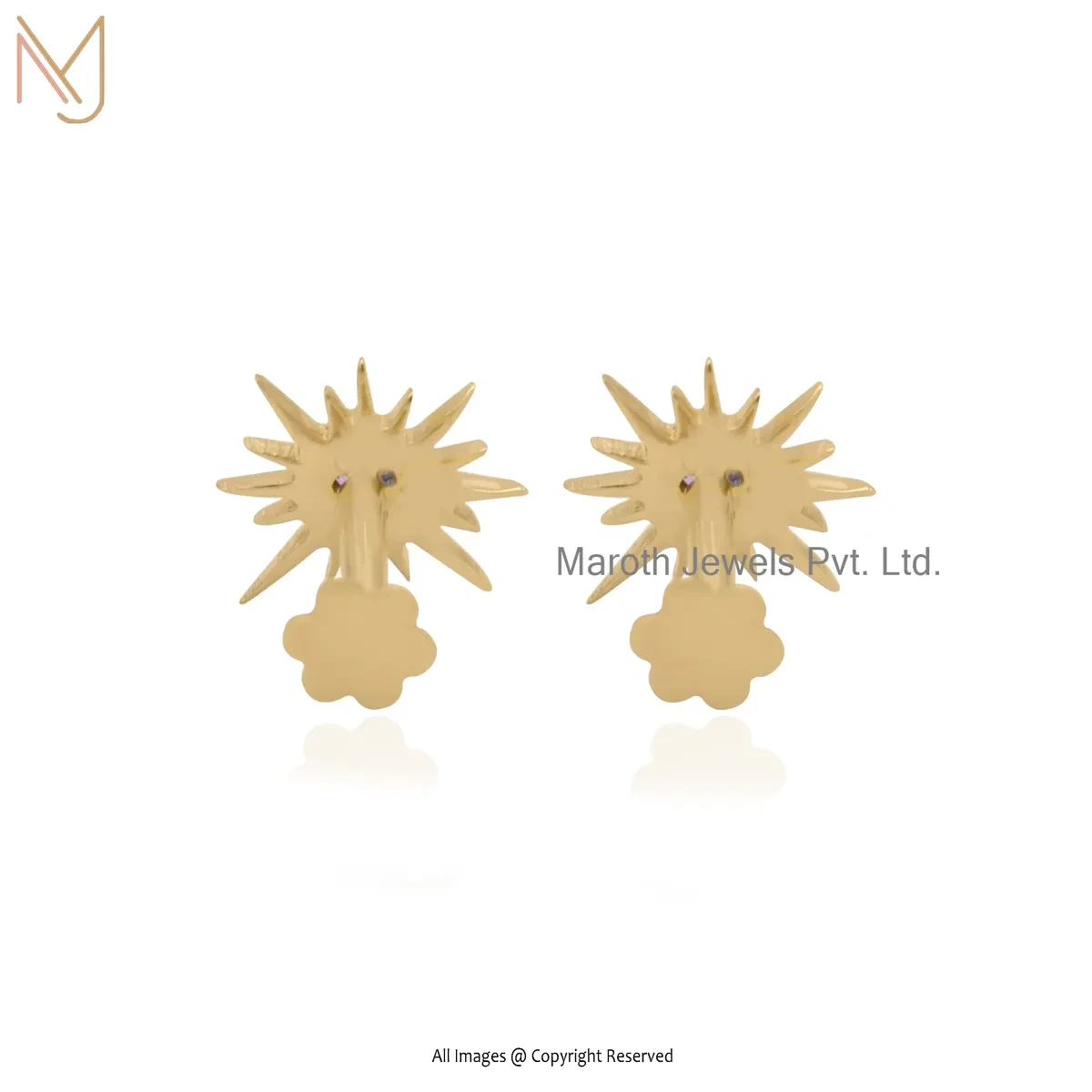 14K Yellow Gold Diamond Multi Gemstone Star Design Stud Earring Custom Jewelry