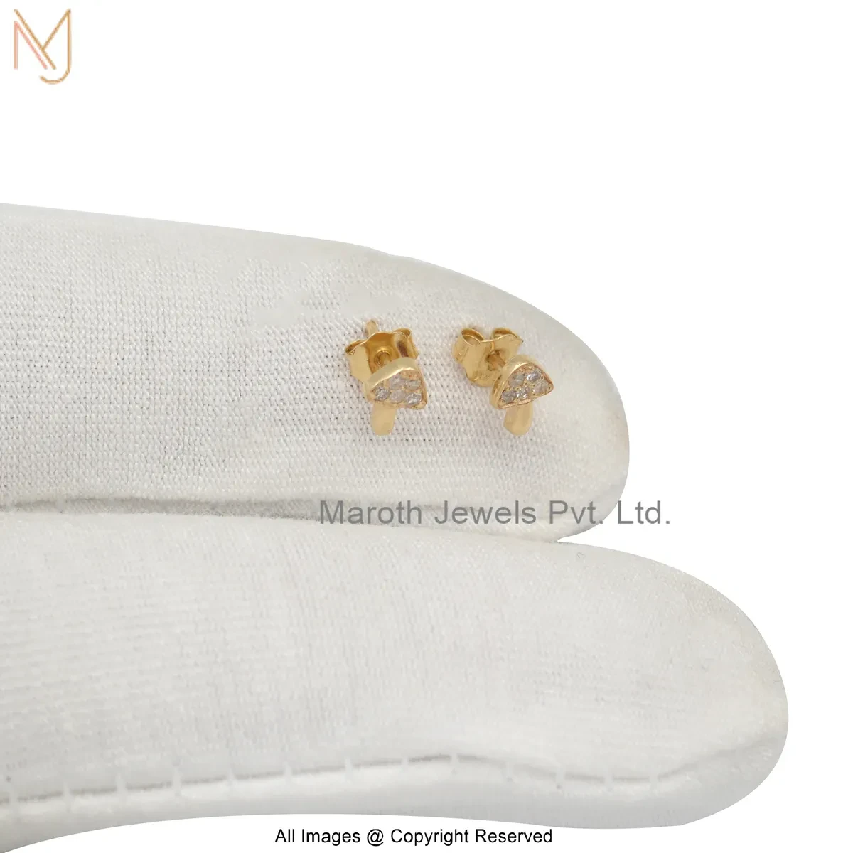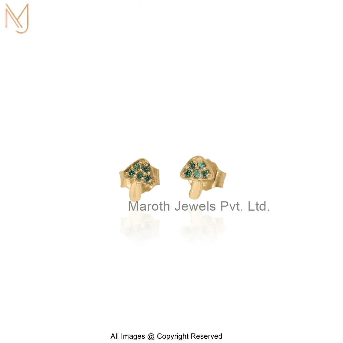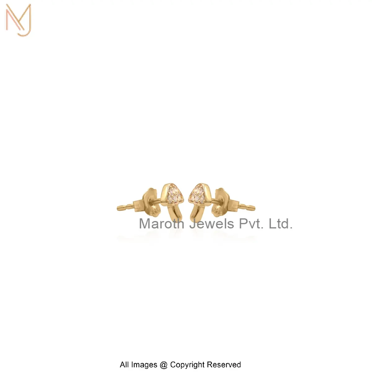 14K Yellow Gold Diamond Tiny Magic Mushroom Stud Earring Manufacturer