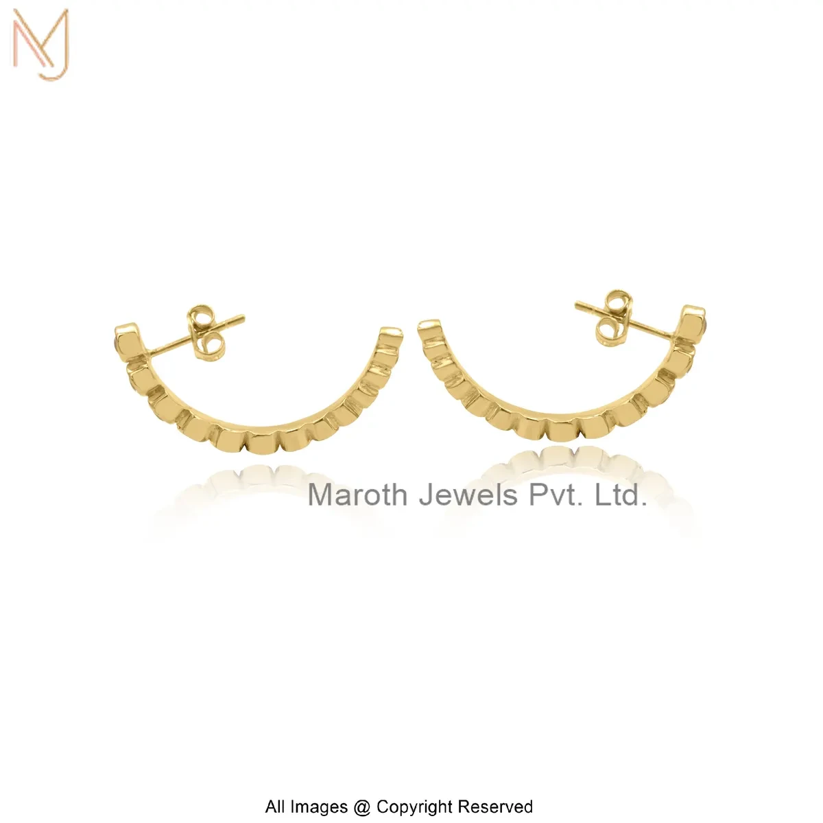 14K Yellow Gold Diamond White Topaz Bezel Half Hoop Earring Manufacturer