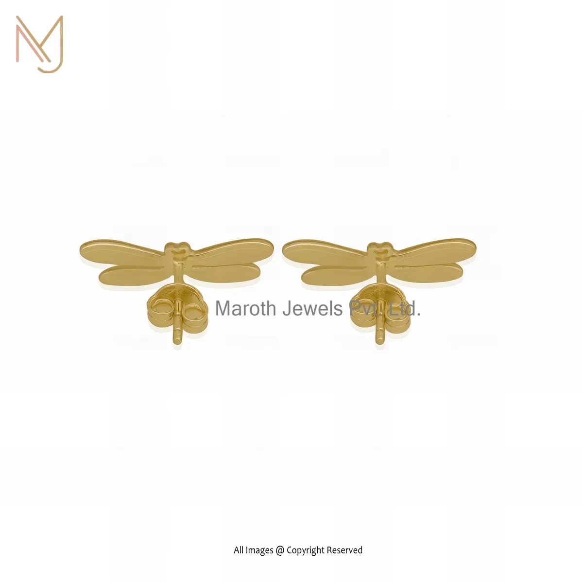 14K Yellow Gold Dragonfly Stud Earrings Jewelry Supplier
