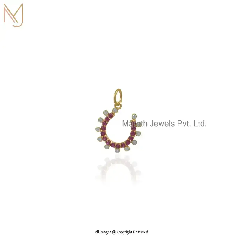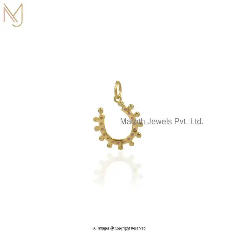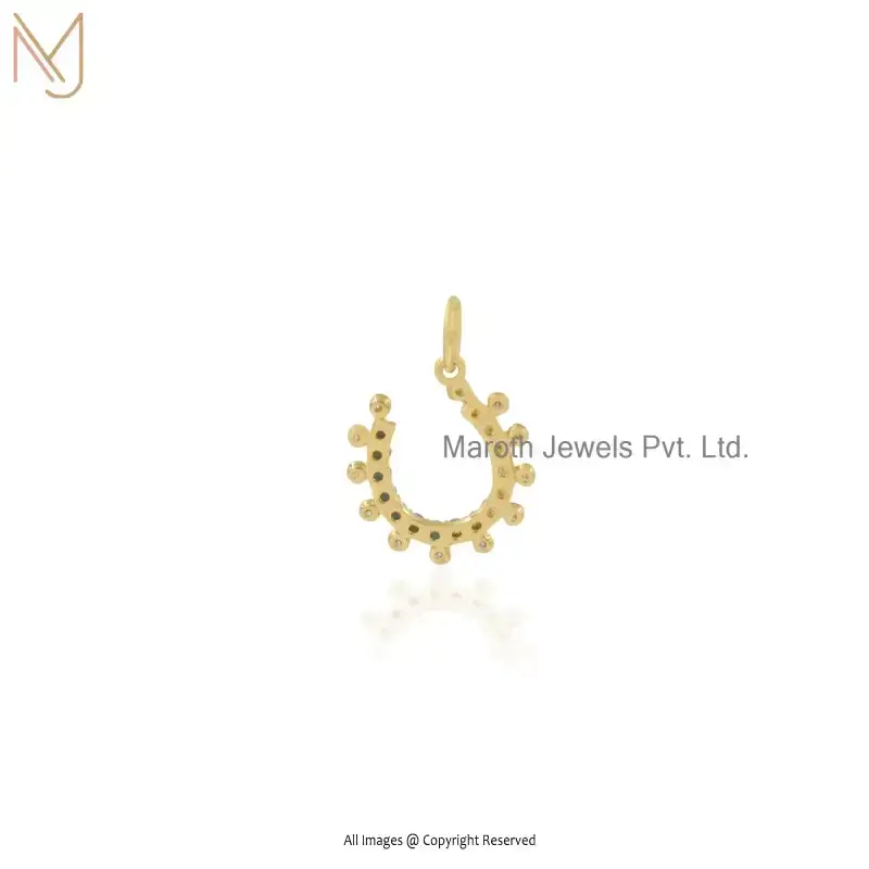 14K Yellow Gold Emerald & Moissanite Beautiful Horseshoe Gemstone Pendant USA