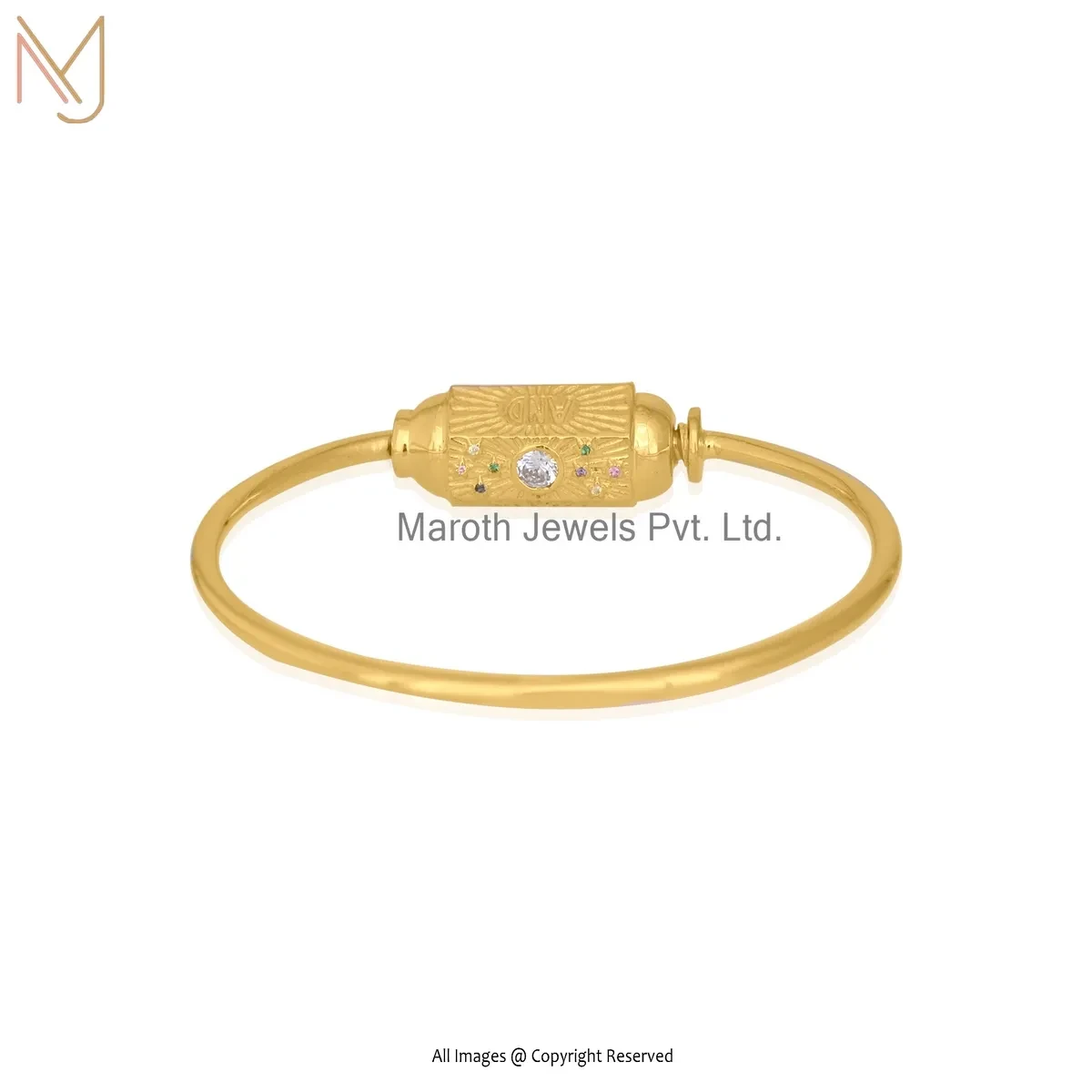 14K Yellow Gold Enamel Multi Gemstone Heart Shaped Amulet Bangle USA