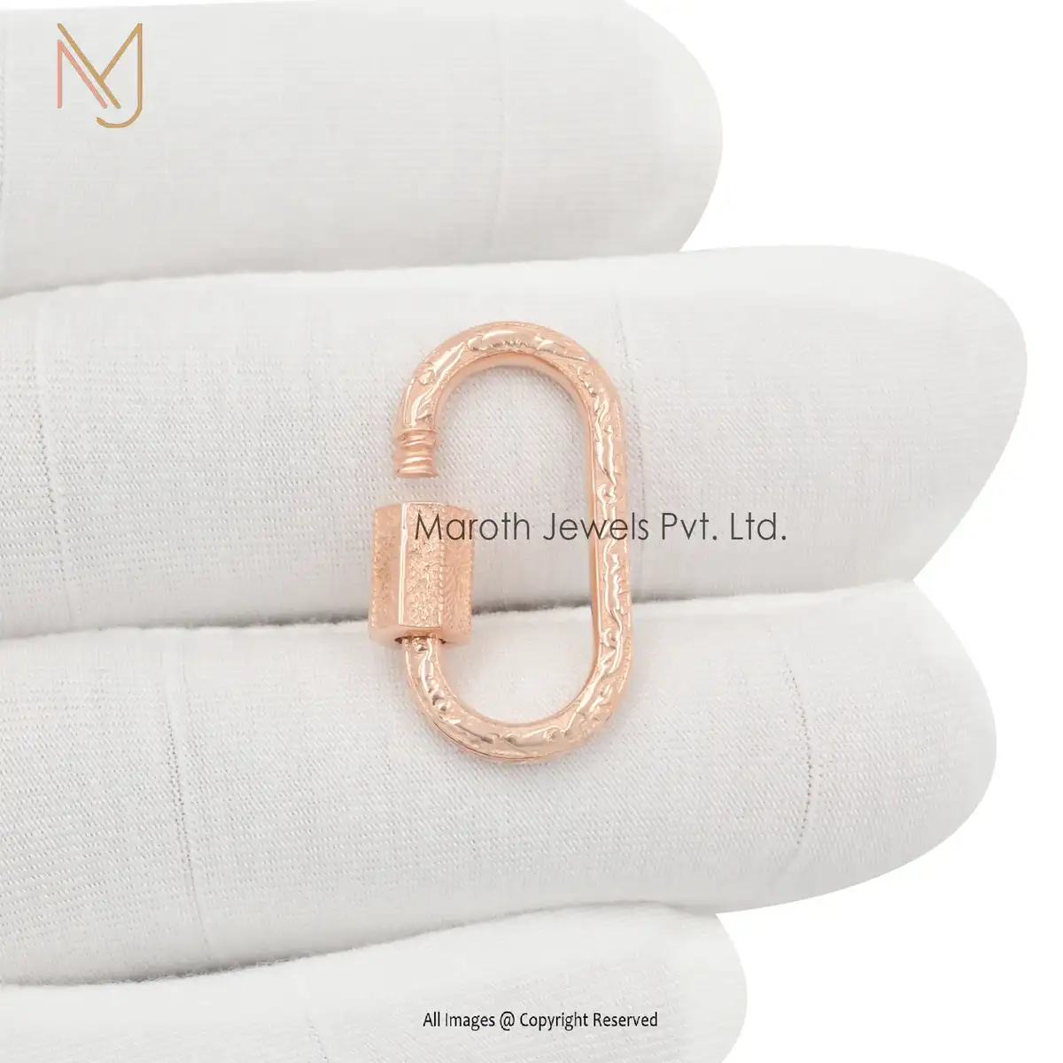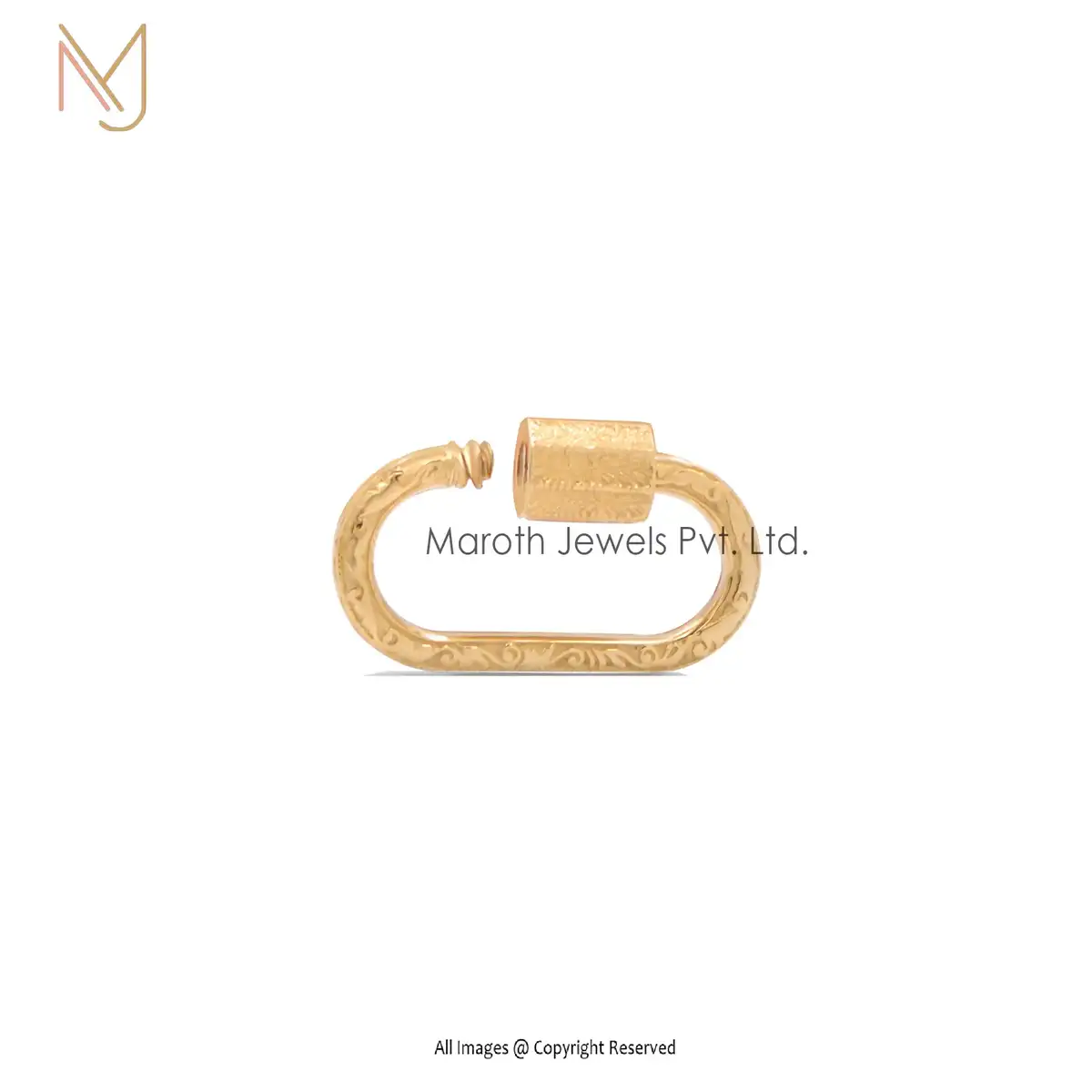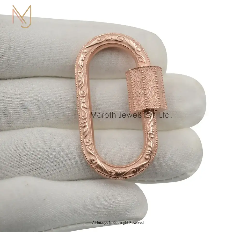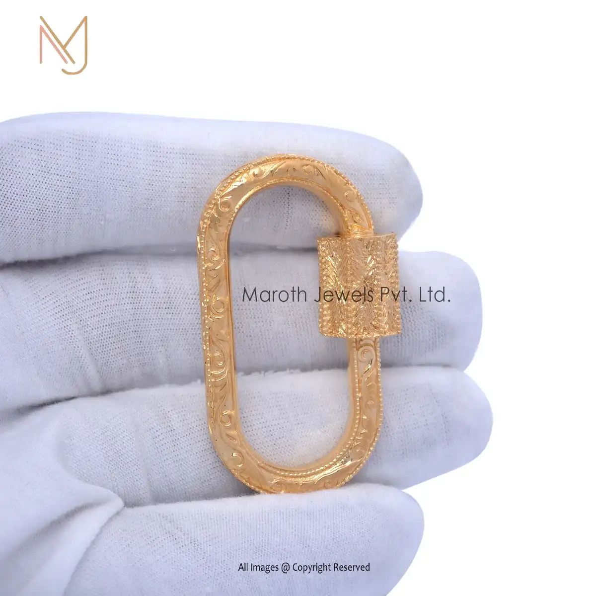 14K Yellow Gold Engraved Carabiner Lock Custom Jewelry