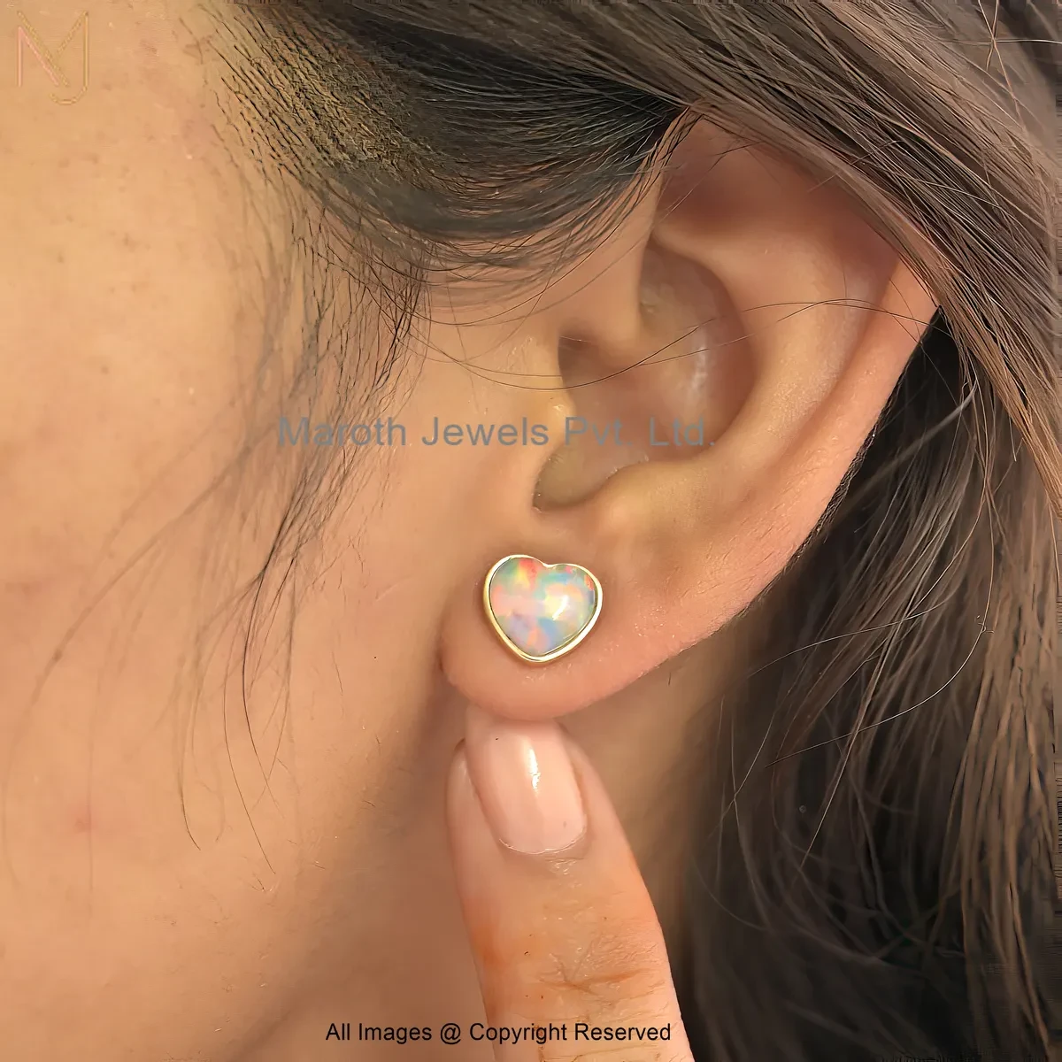 14K Yellow Gold Ethiopian Opal Heart Stud Earring Manufacturer