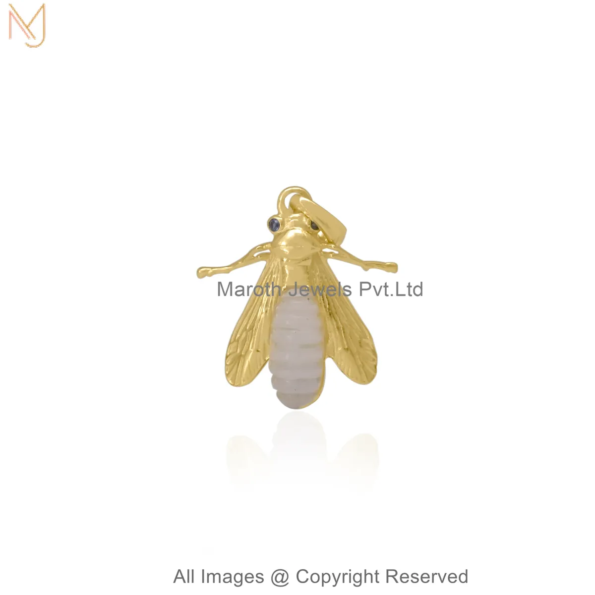 14K Yellow Gold Gemstone Cicada Charm Pendant Manufacturer