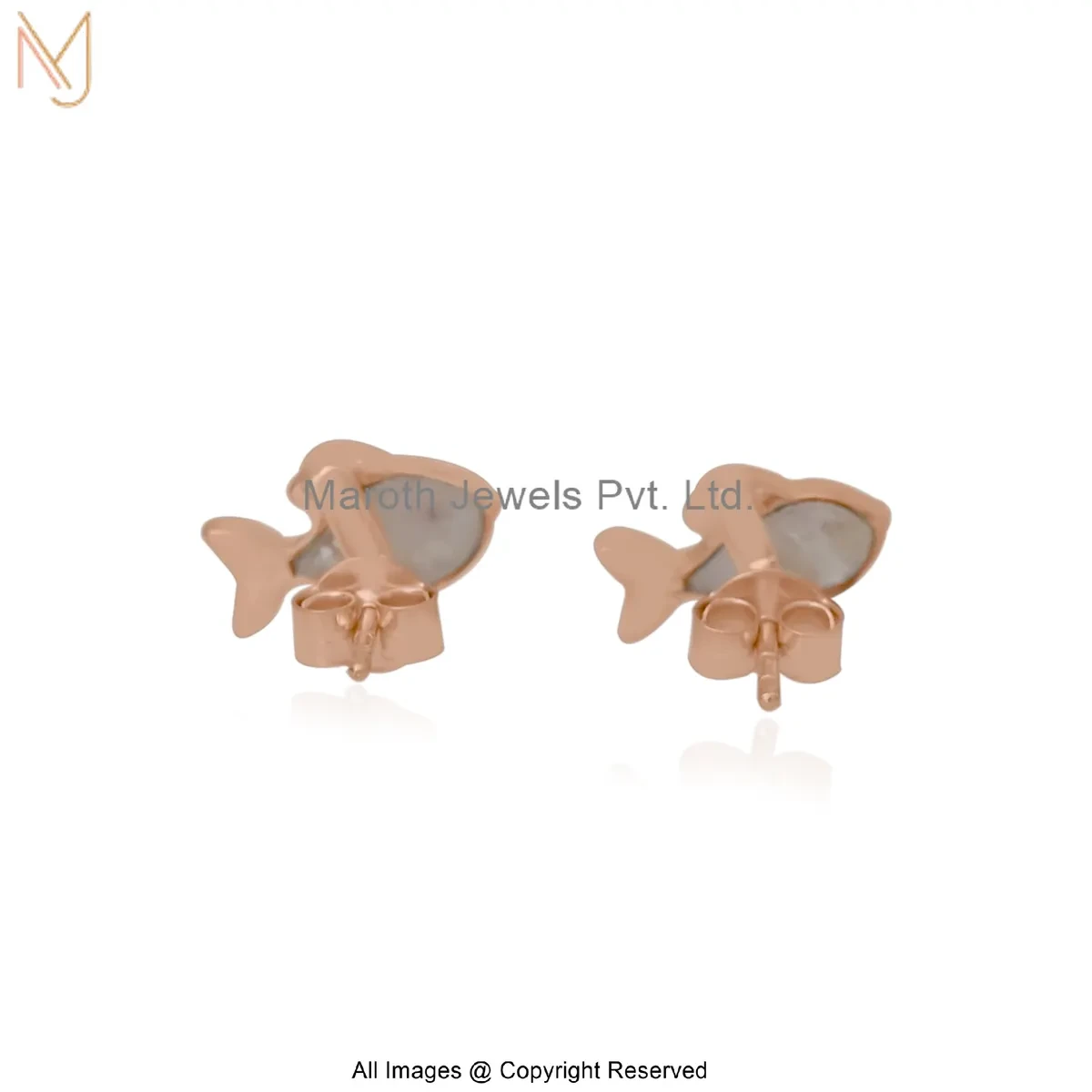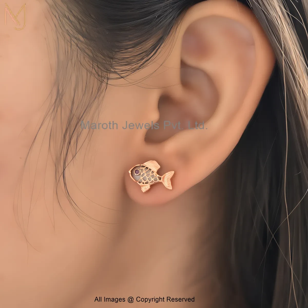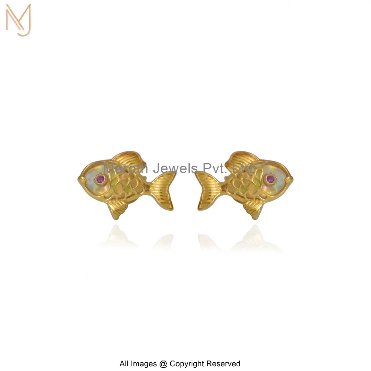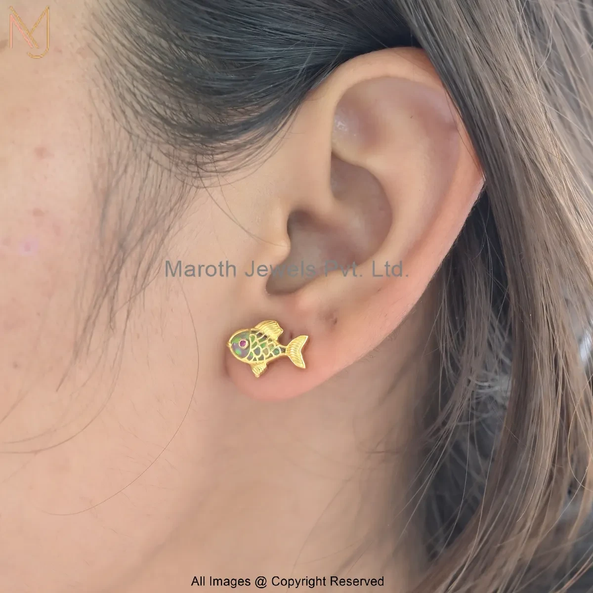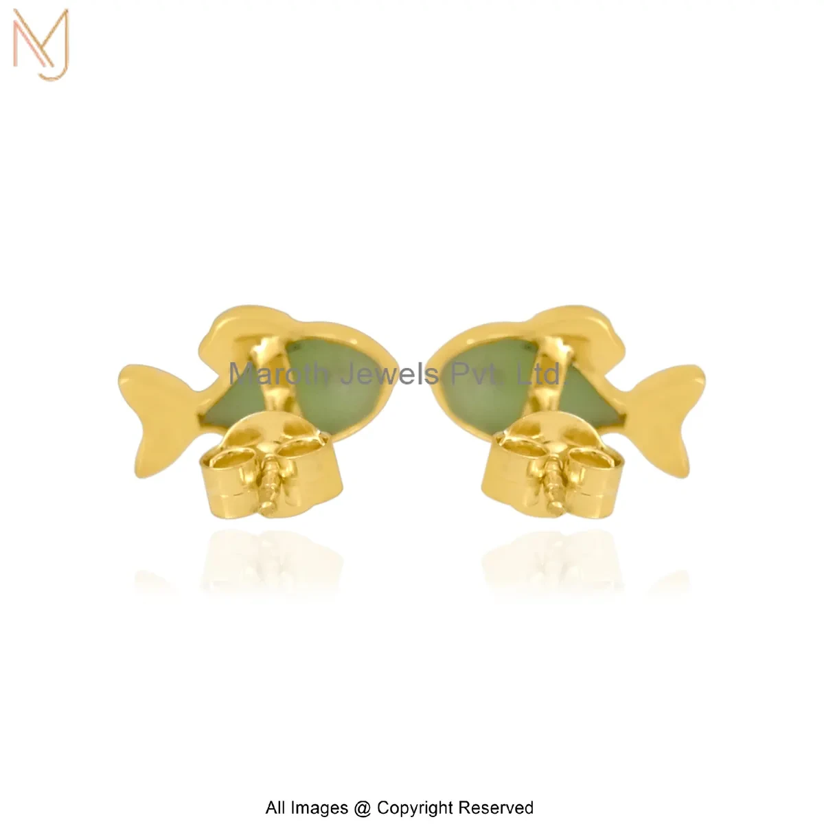 14K Yellow Gold Gemstone Fish Stud Earring Custom Jewelry
