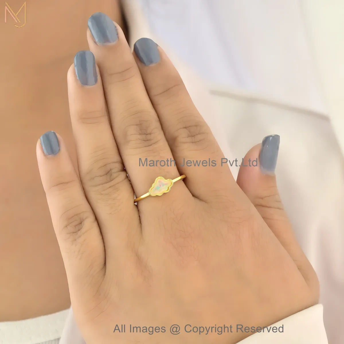 14K Yellow Gold Gemstone Minimal Cloud Opal Ring Jewelry Supplier