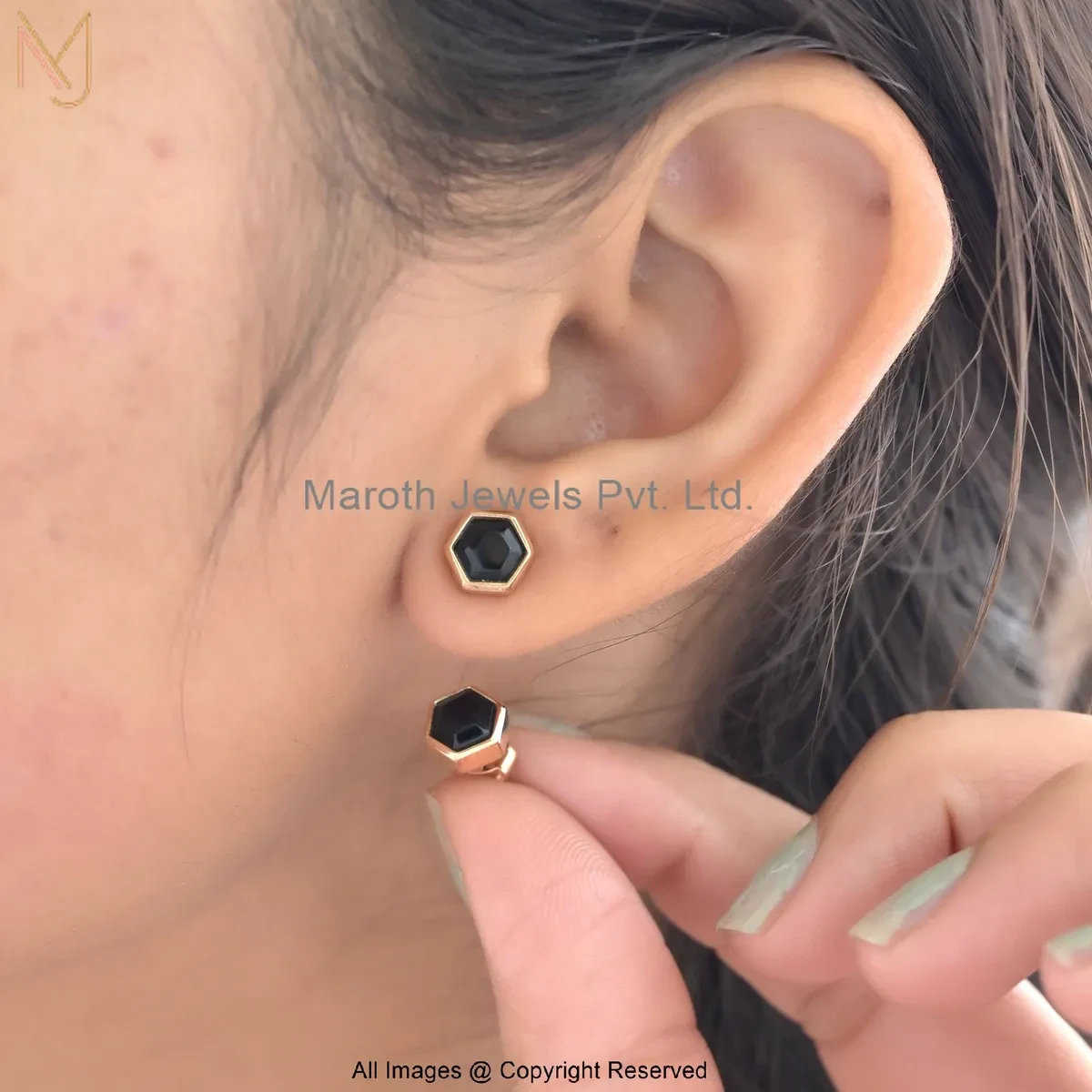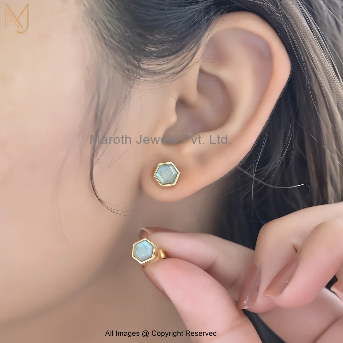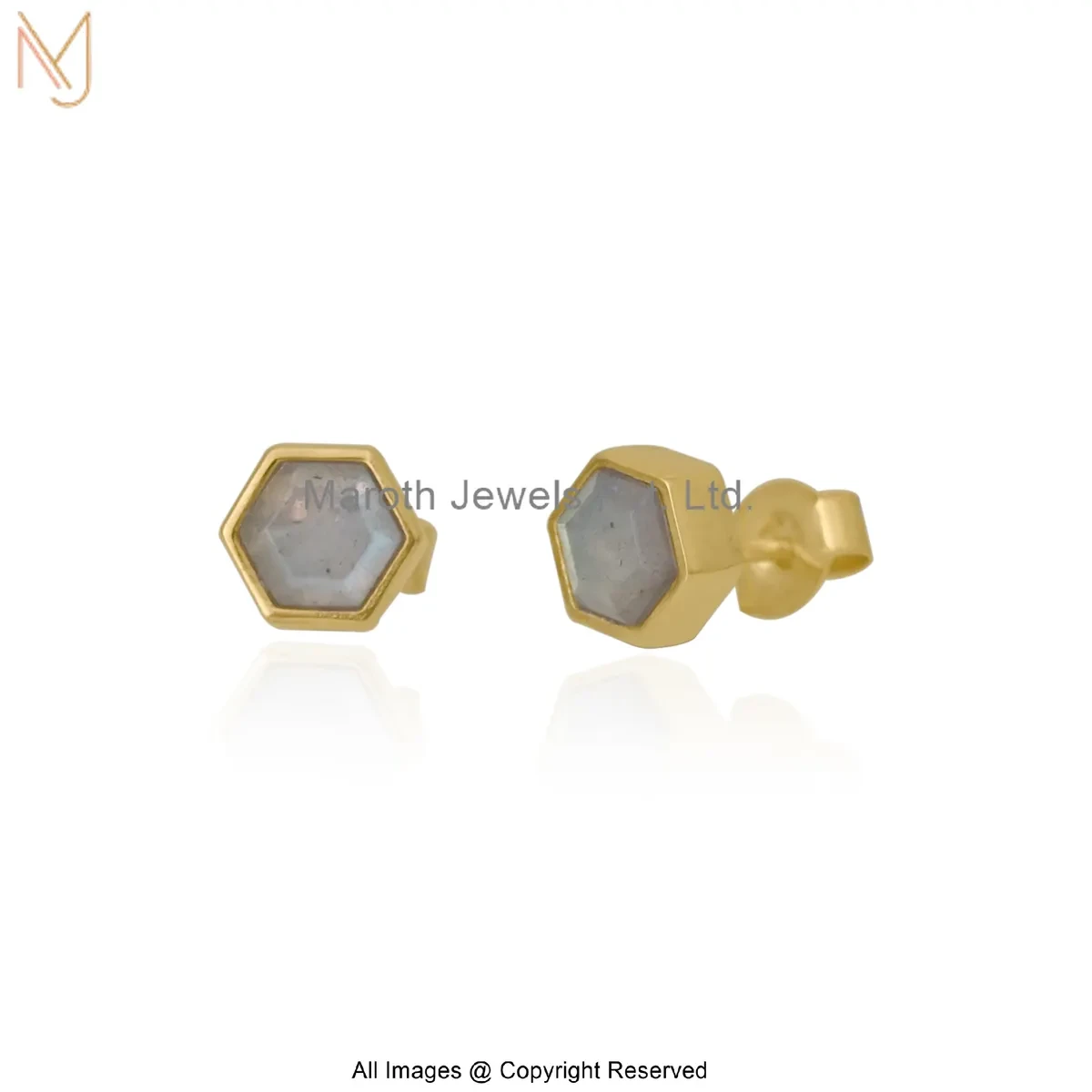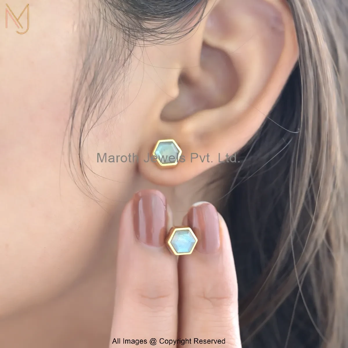 14K Yellow Gold Gemstone Mint Green Hex Stud Earrings Manufacturer