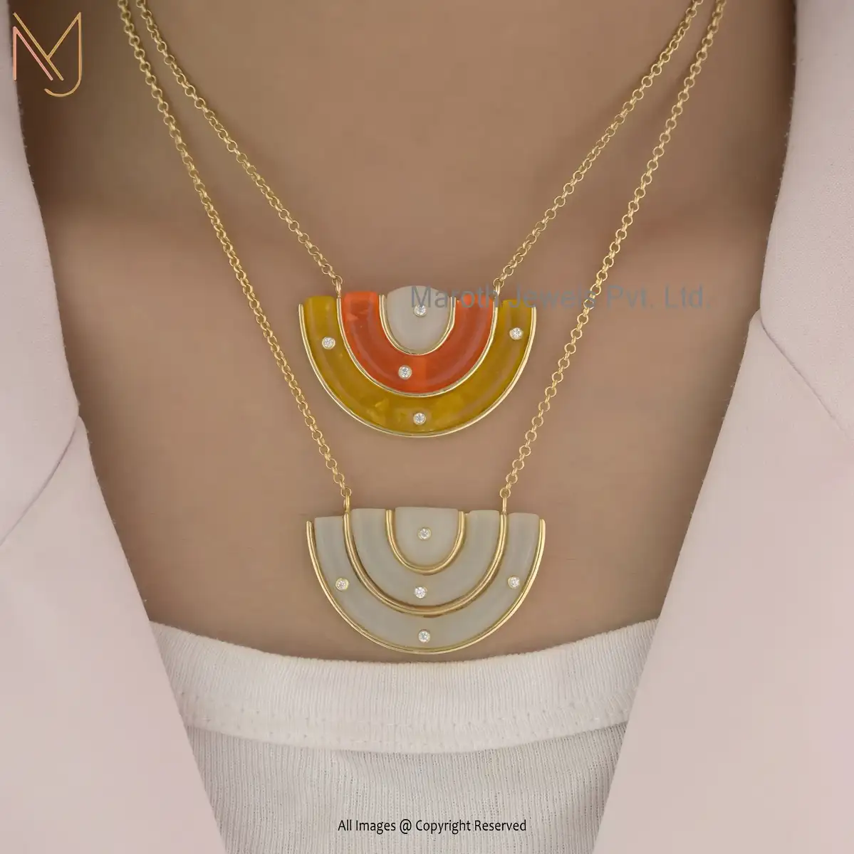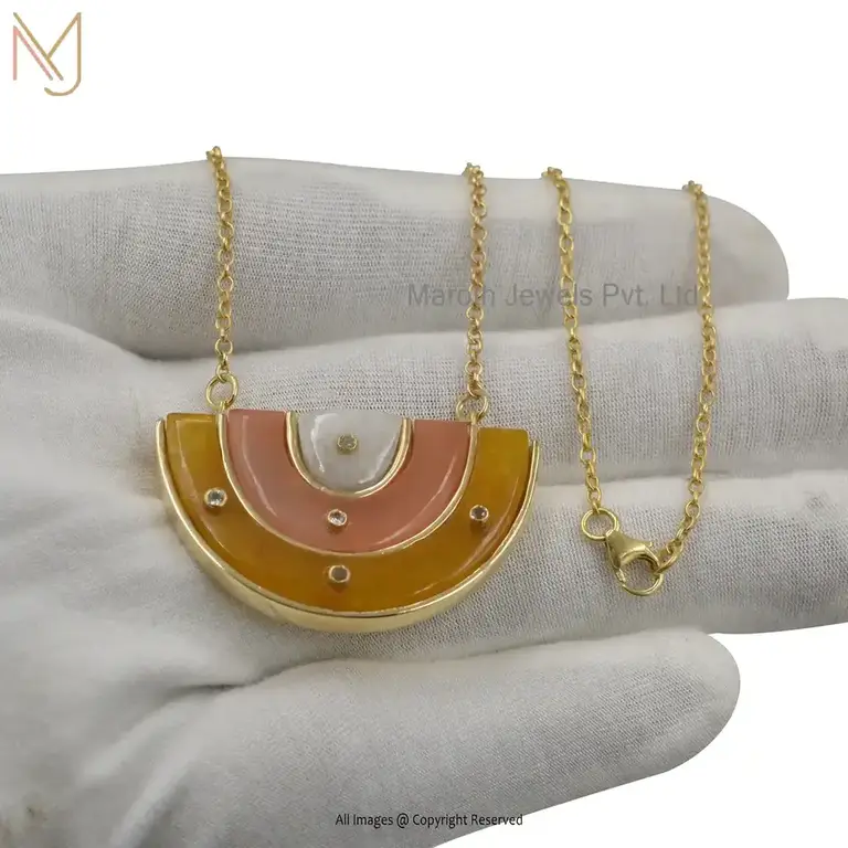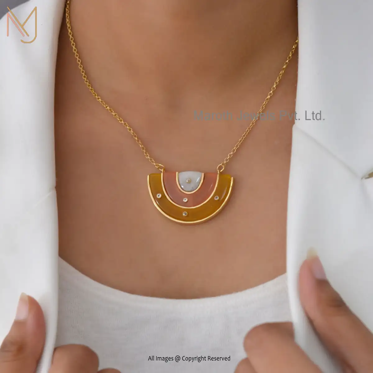 14K Yellow Gold Gemstone Rainbow Pendant Jewelry Manufacturer