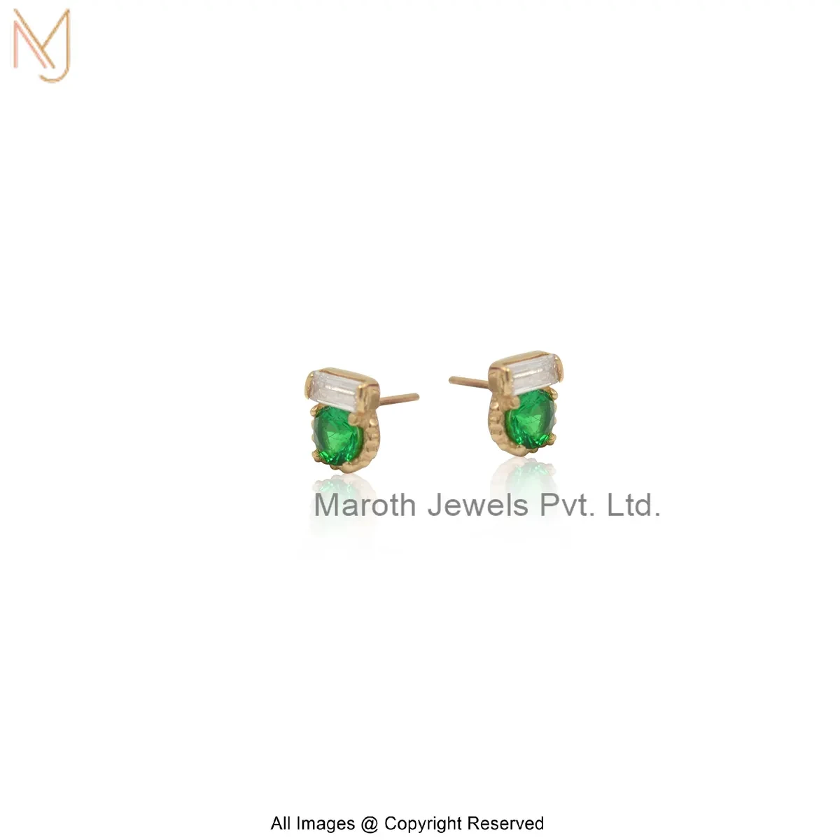 14K Yellow Gold Green Cubic Zircon Baguette Stud Earring Jewelry Supplier